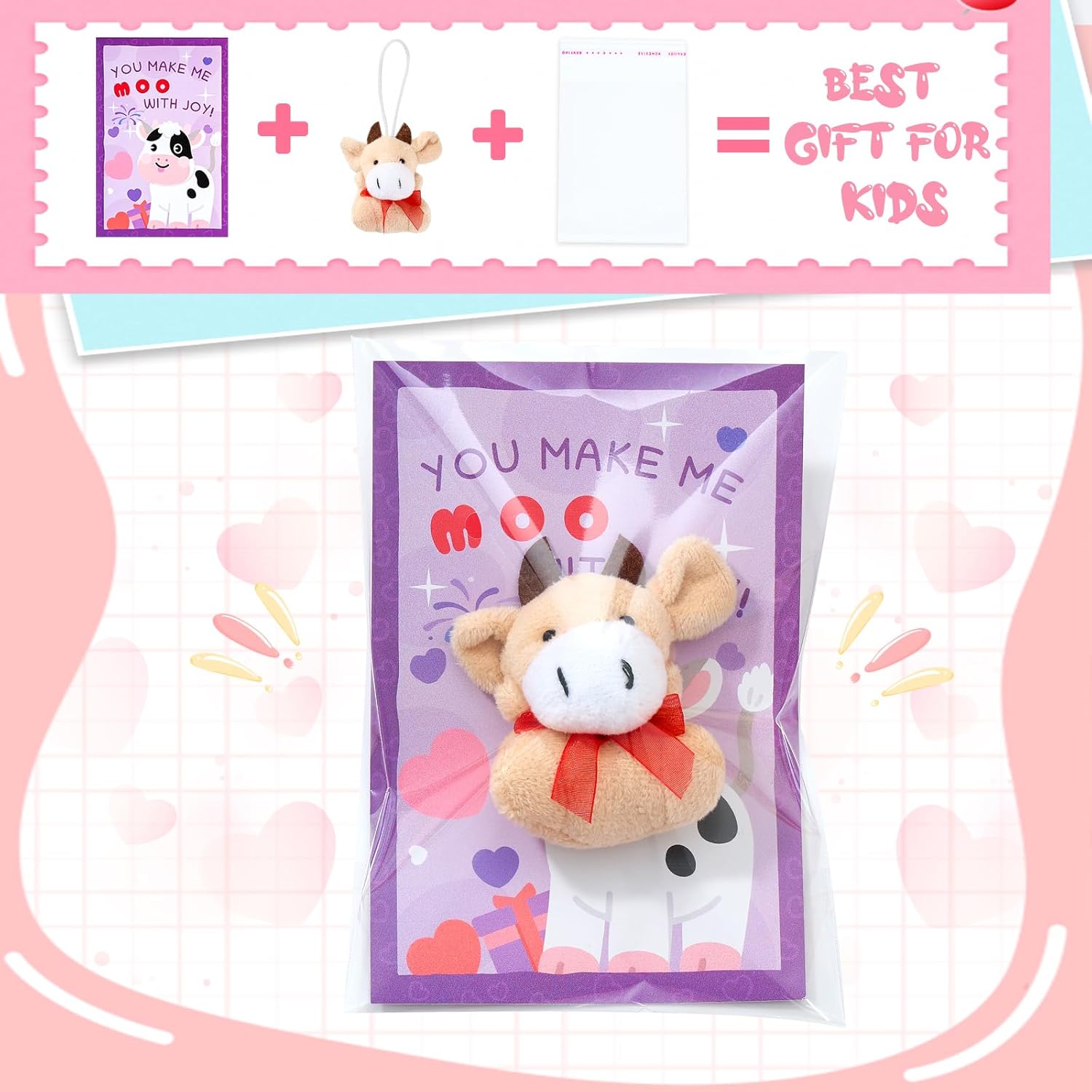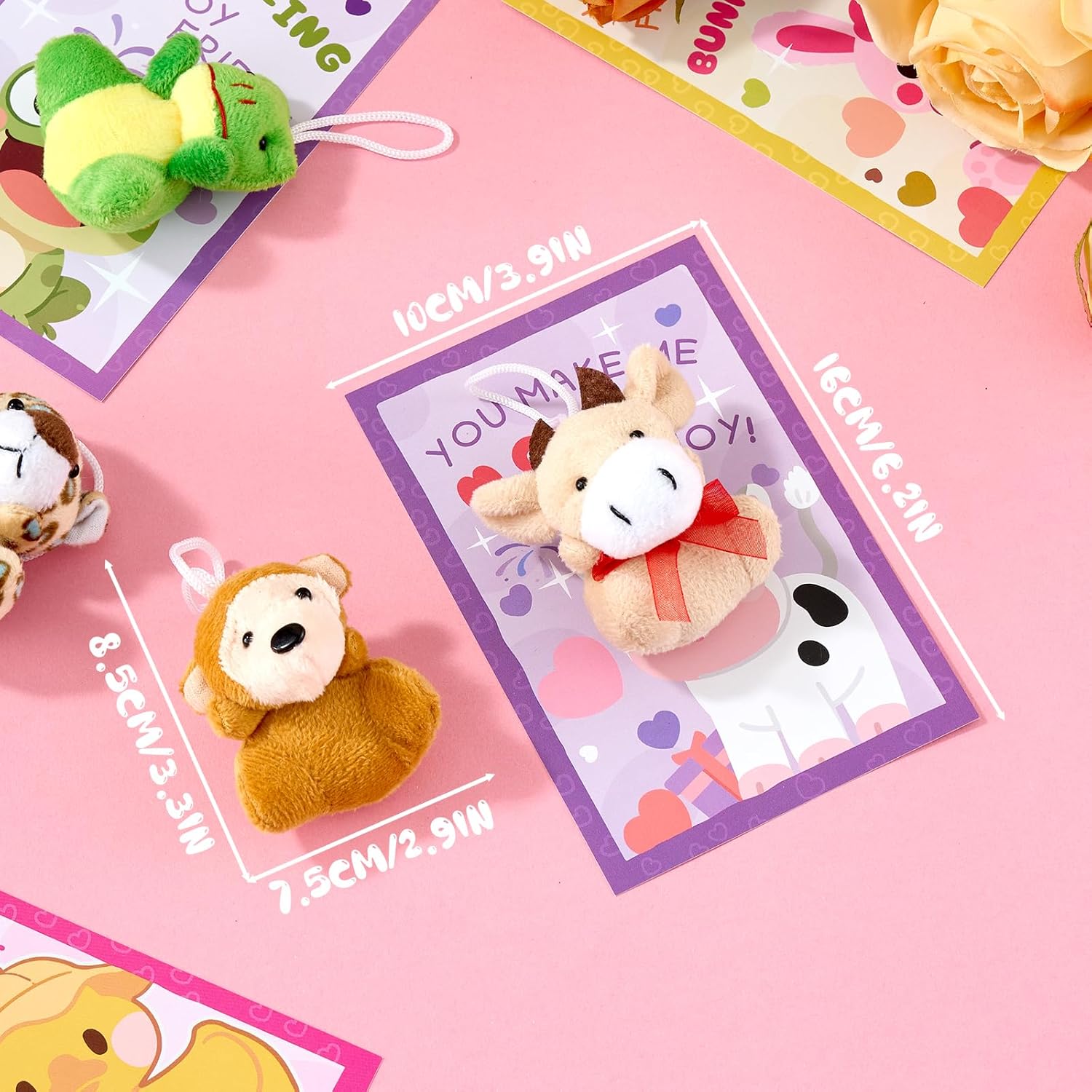 Aurdox 24 Pack Valentines Day Cards for Kids School with Mini Plush Toys & Bags - Stuffed Animal Keychains for Classroom Exchange Prize, Carnival Prizes, Jungle Theme Party Favors (12 Zoo Designs)