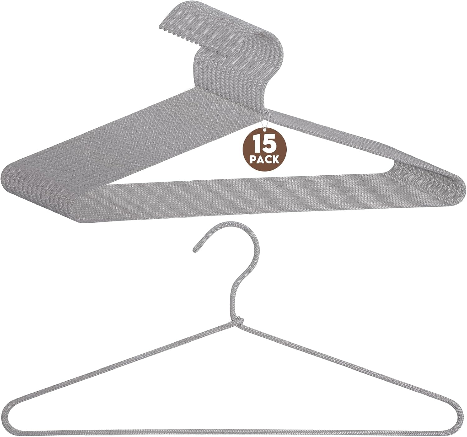 Features: Our set of 15 non slip hangers isn't just a practical item. It also makes for an ideal gift. Suitable for housewarming, weddings, or a new job gift, it is a nice option for friends, family, and colleagues. Embrace neatness and a finer life with our sturdy hangers. Each hanger is designed with a passion for quality living, offering you a simple way to keep your clothes tidy, easily accessible, and in nice condition. Specifications: Material: fabric, metal Color: black, white Size: about 16 x 8 inches/ 40.64 x 20.32 cm Package includes: 30 x Fabric wrapped metal hangers Notes: Manual measurement, please allow slight errors on size. The color may exist a slight difference due to different screen displays
