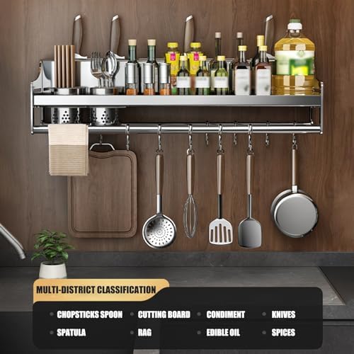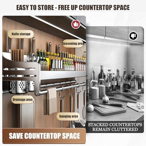 Introducing our Premium Kitchen Shelf Organizer, designed to elevate your kitchen organization while adding a touch of elegance to your culinary space. This versatile organizer showcases a sturdy build with a thickened base, ensuring exceptional durability and strong bearing capacity for all your kitchen essentials. With its innovative open-storage design, this organizer promotes optimal air circulation around your kitchen utensils, allowing them to air-dry naturally. This feature not only keeps your utensils tidy but also helps maintain their freshness, creating a healthier environment for your cooking adventures. Specifically crafted to accommodate a variety of kitchen tools, our organizer is perfect for hanging knives, spatulas, cutting boards, and tea towels. Available in multiple sizes—40cm, 50cm, 60cm, 70cm, and 80cm—this shelf organizer seamlessly fits into any kitchen layout, whether you have a compact space or a larger area to work with. Transform your kitchen into a more organized and inviting space with our Premium Kitchen Shelf Organizer. It's not just about storage; it's about enhancing your cooking experience and ensuring that everything you need is within easy reach. Say goodbye to clutter and hello to a beautifully organized kitchen that inspires creativity and efficiency in every meal preparation.
