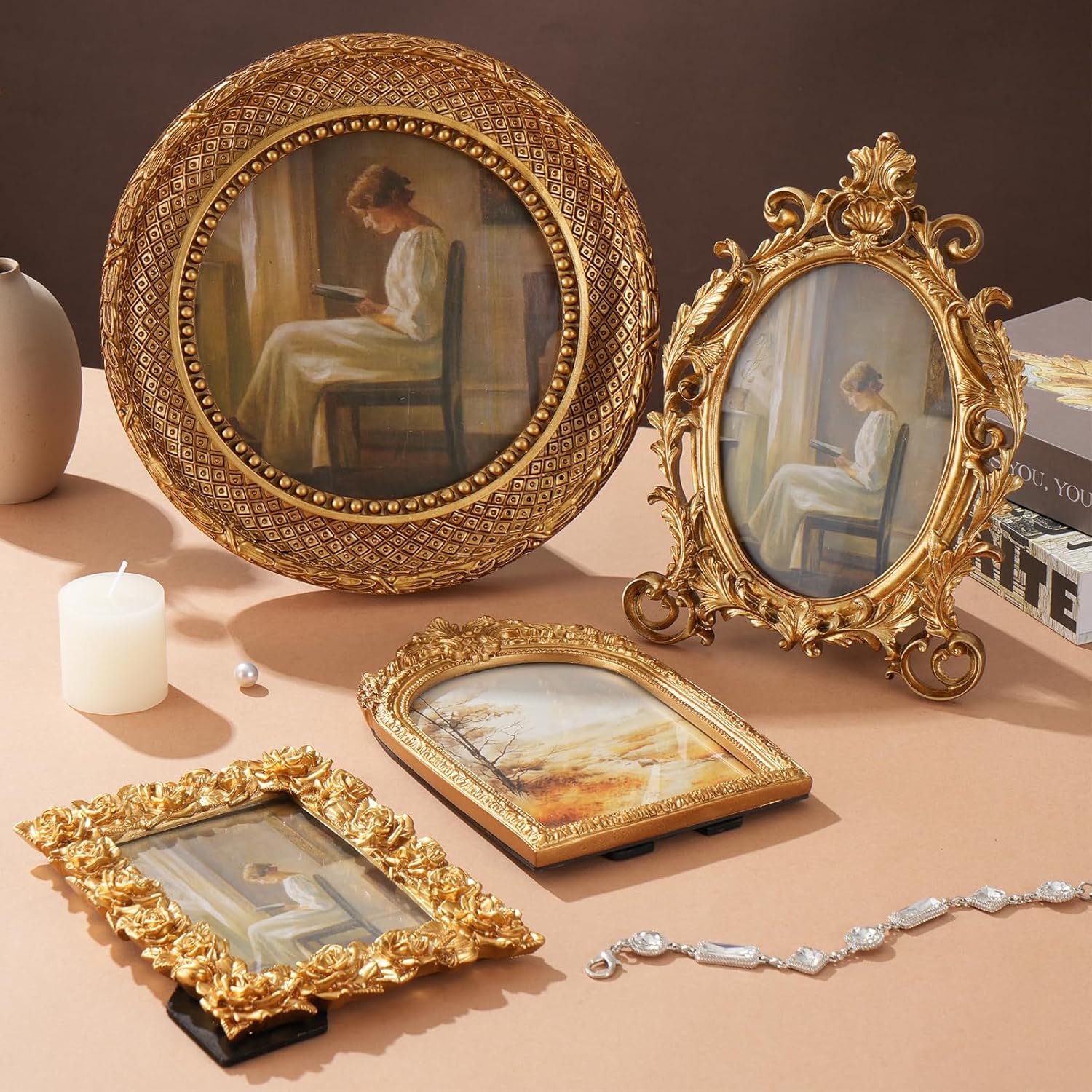 | Included Components | 4 gold antique frames (oval, arch-shaped, rectangular, round), high-quality photo paper |