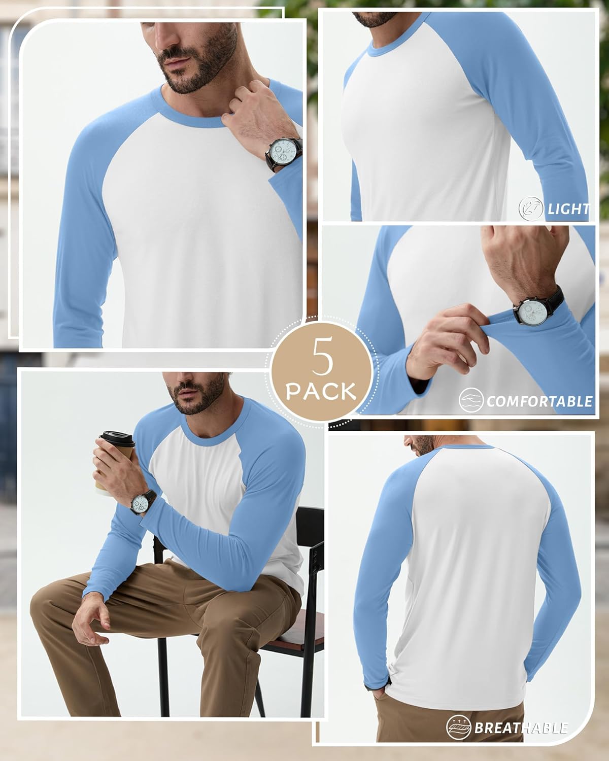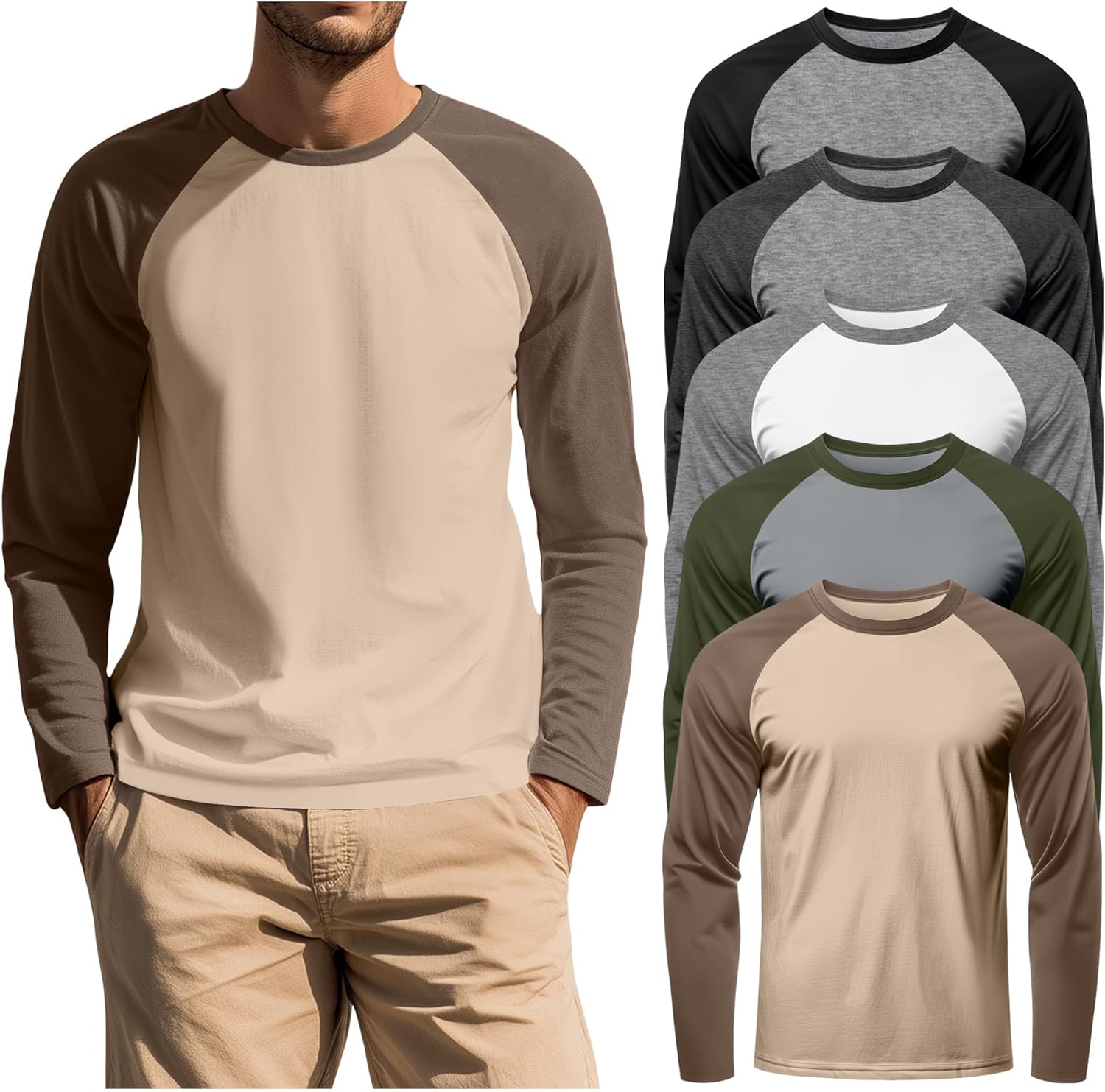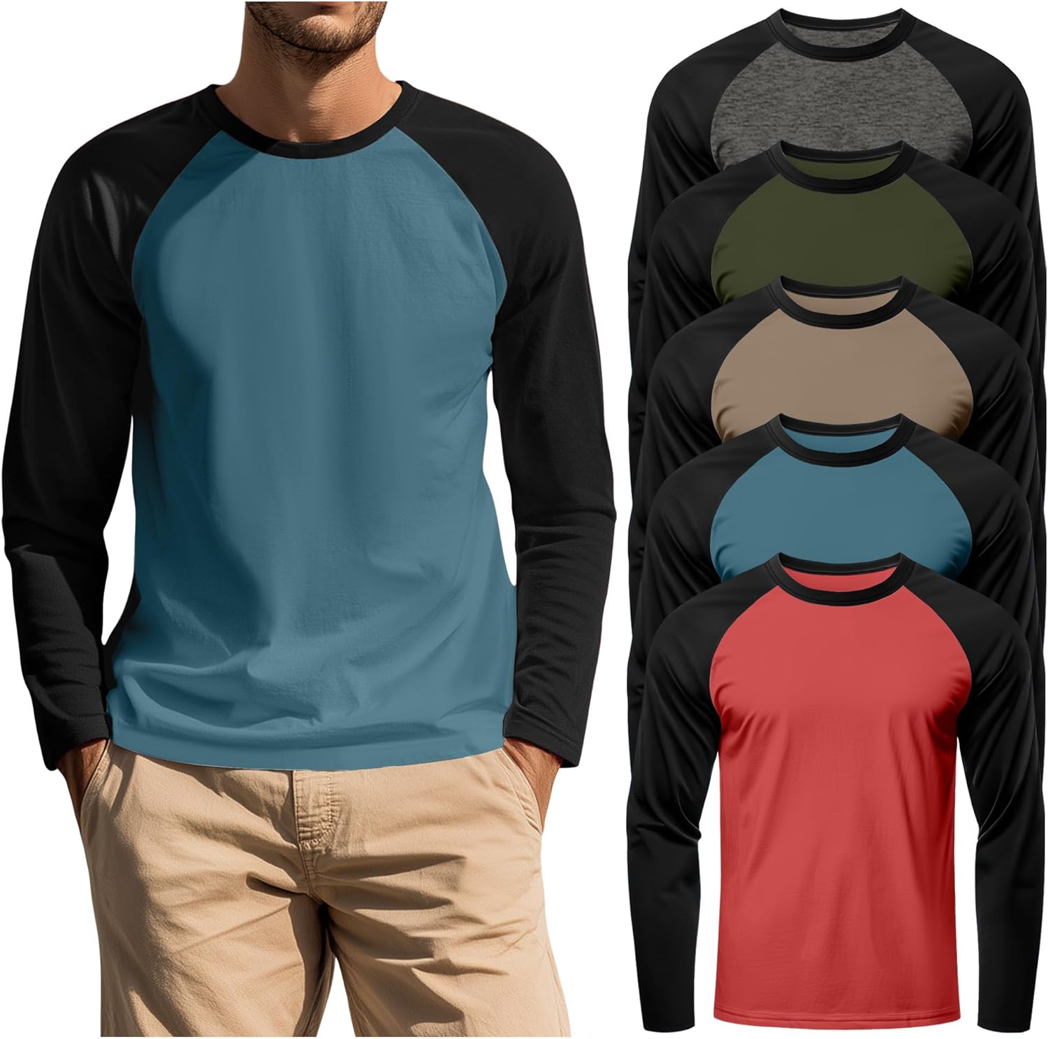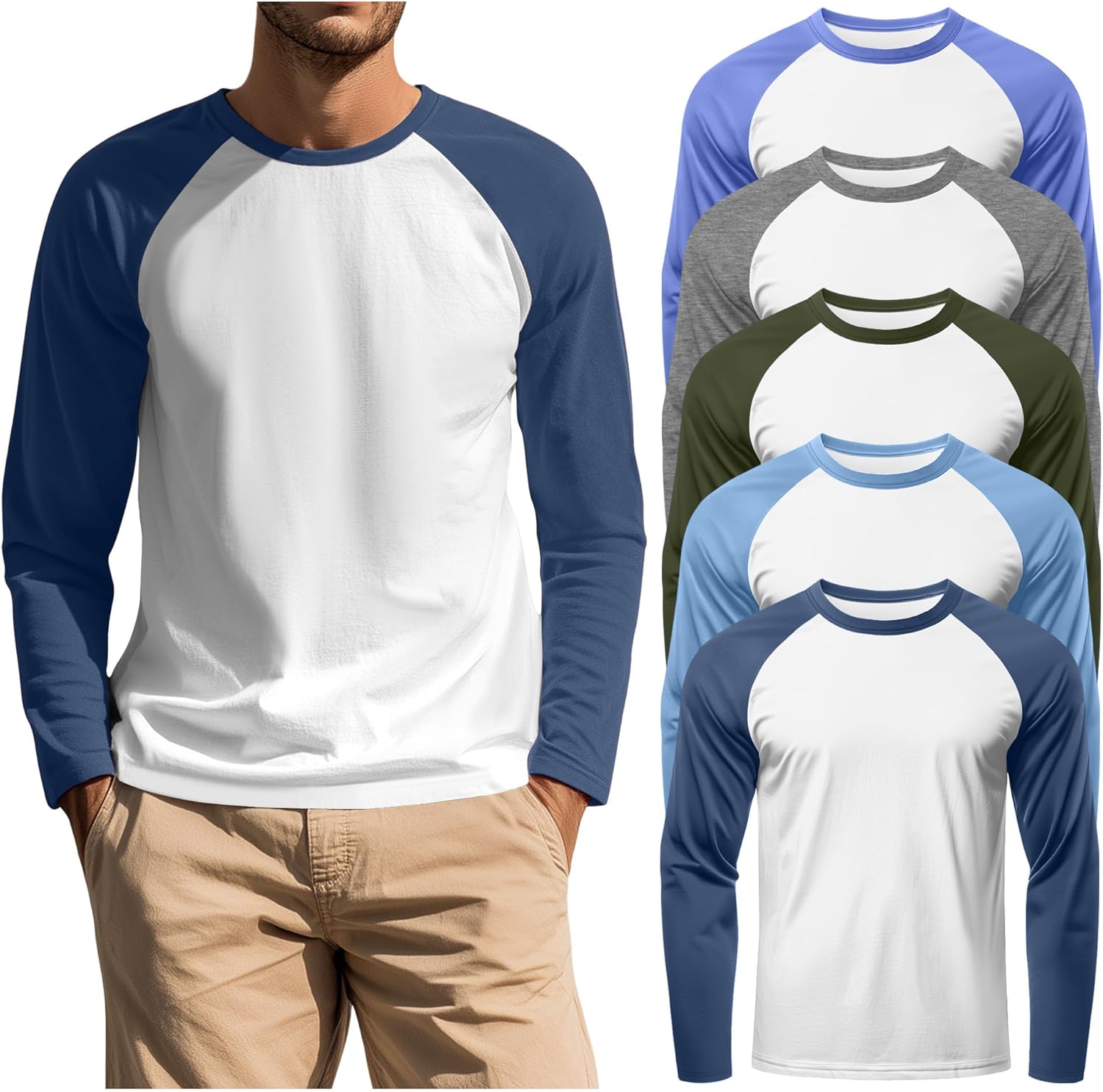 Features: Details about the cut and design: These men's long sleeve shirts are regular fit designed, suit for most body shape. One size up is recommended if you want a more relaxed fit effect. Nice present for men: The mens long sleeve tee shirts are suitable for men of different ages, making it a good present for friends, son, father, or to your own and so on. Specifications: Material: 60% Polyester, 35% Cotton, 5% Spandex Package includes: 5 x men's men's casual baseball t shirts Notes: Manual measurement, please allow slight errors on size. The color may exist a slight difference due to different screen display. Check the August Alley size chart before purchasing, it would help you find a more accurate size for yourself. Hand/machine wash in gentle with cold water, hang to dry or line dry, do not bleach, warm iron if needed, wash dark colors separately