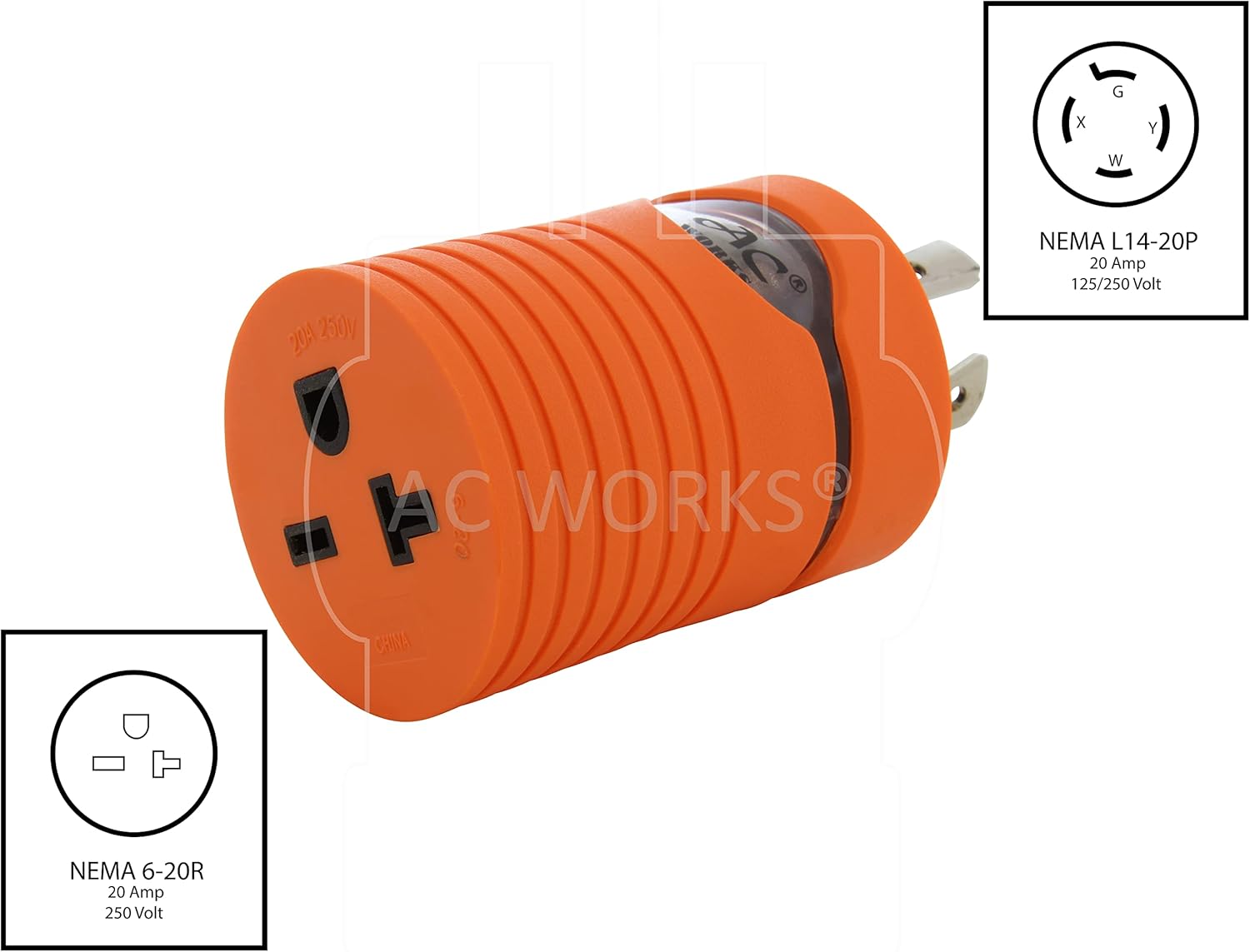 | Plug Type | NEMA L14-20P to NEMA 6-15/20R |