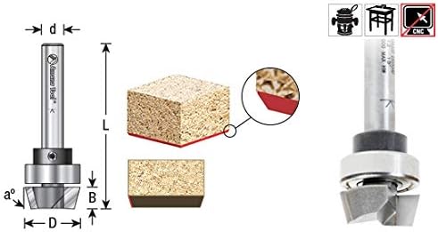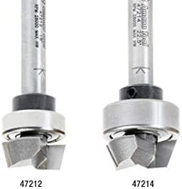 Question on 47212 carbide Tipped bevel trim 15 deg x 5/8 dia x 1/4 x 1/4 inch shank with upper ball bearing, #47212, diameter (D) 5/8, angle (a°) 15°, cutting height (B) 1/4, shank (D) 1/4, overall length (L) 1-7/8, replacement bearing 47712, flutes 2, D1 1/2, 47212 carbide Tipped bevel trim 15 deg x 5/8 dia x 1/4 x 1/4 inch shank with upper ball bearing