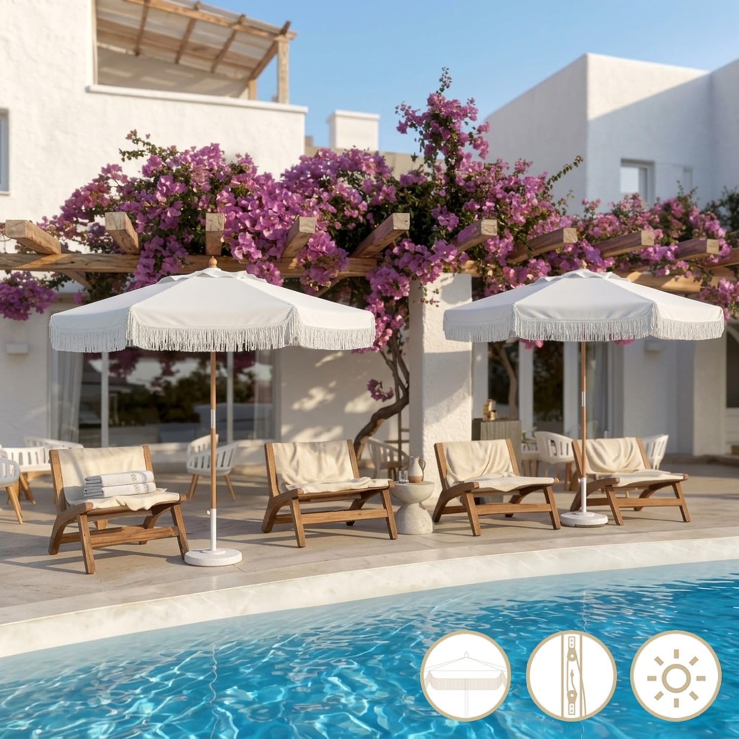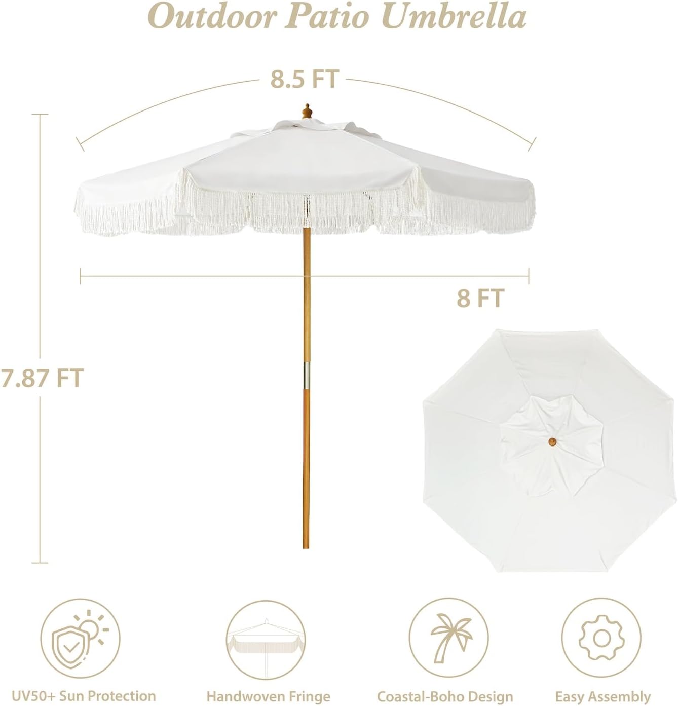 | Subject Character | 8.5ft Luxury wood Boho Patio Umbrella with Fringe |