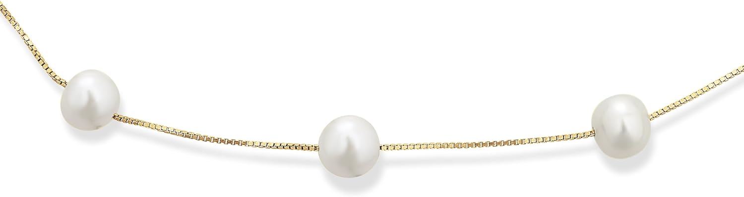 Elevate your style with this stunning station pearl necklace. Crafted with high-quality freshwater cultured pearls, it exudes elegance and sophistication. Each pearl showcases unique luminescence, adding mesmerizing shine. The delicate .925 Sterling Silver chain enhances its timeless beauty. Perfect for any occasion, this chic accessory is a must-have. Order now and embrace its captivating charm.