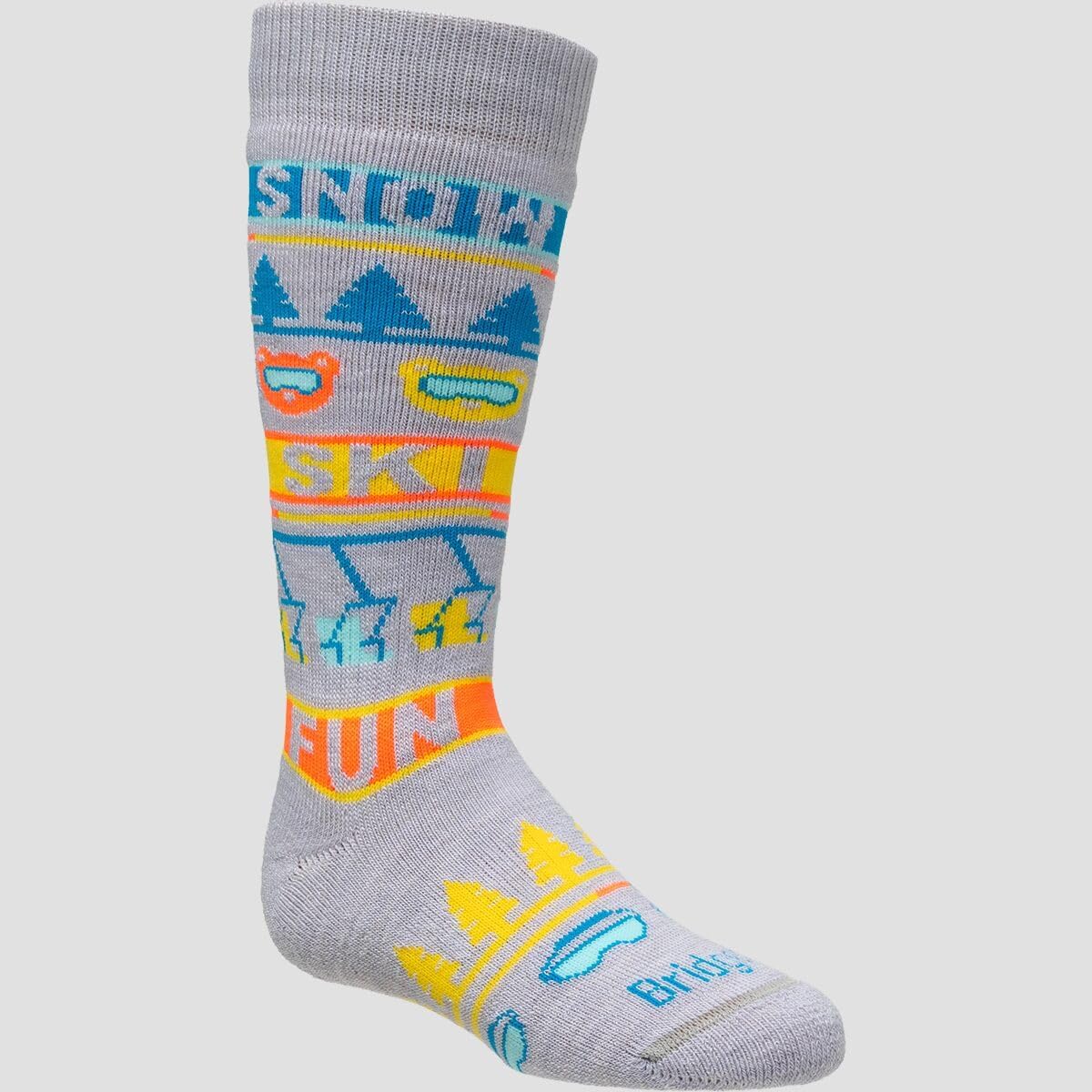 When kids are learning to love the slopes, keeping their feet warm and dry makes all the difference. The Bridgedale Ski Merino Sock 2-Pack gives them cozy coverage with a merino wool blend that insulates against the cold while wicking away moisture. Designed with a knee-high fit, light cushioning, and a performance-focused build, these socks provide warmth without bulk so they fit comfortably inside ski boots. The ThermoFit technology ensures they hold shape wash after wash, while features like a flat toe seam, Y-heel, and shock zones add comfort and durability for long days in the snow. With two pairs in every pack, they’re ready for ski school, family trips, or everyday winter adventures.