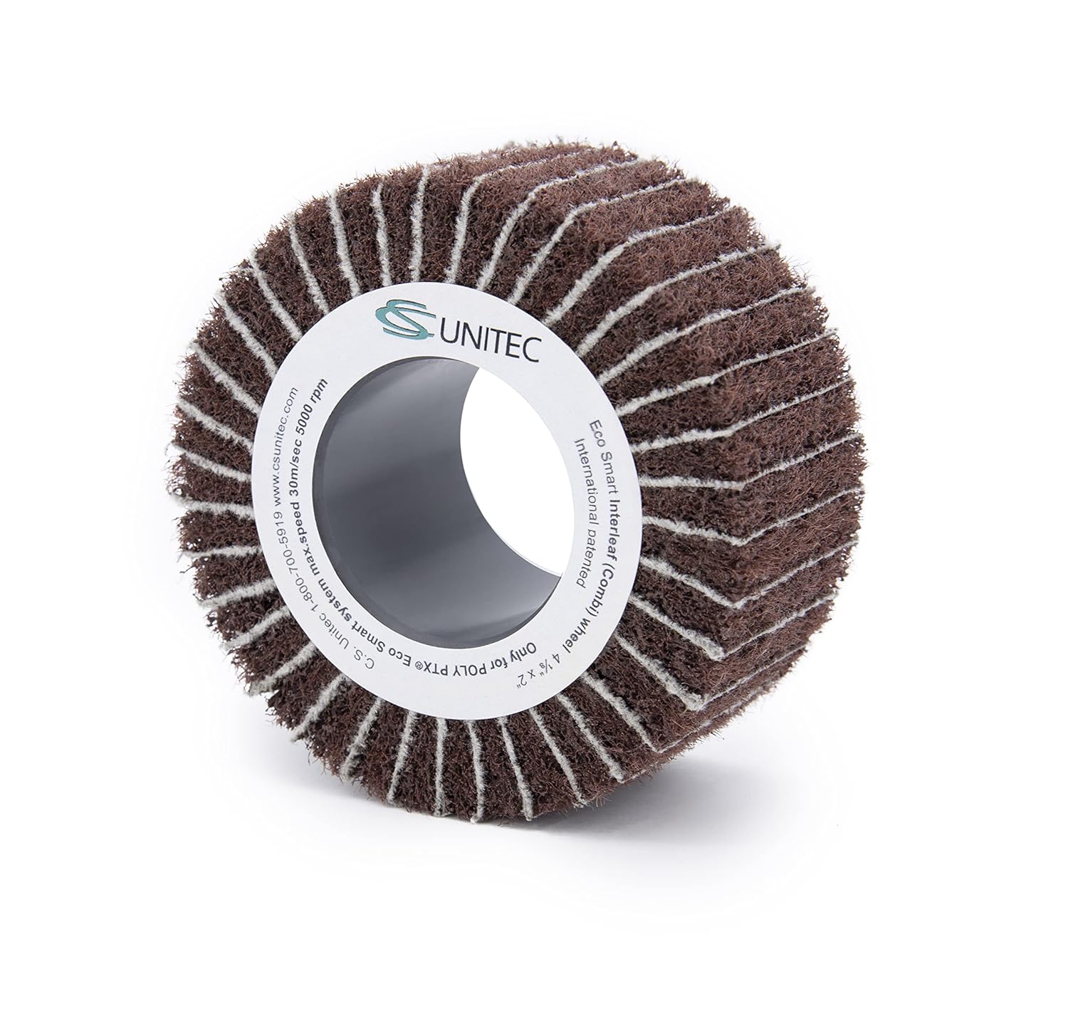 Nylon fleece combined with abrasive flaps for matte finishing, burnishing and removing light scratches, oxidation and handling marks on stainless steel and all metals. For removing old paint on wood while smoothing at the same time.