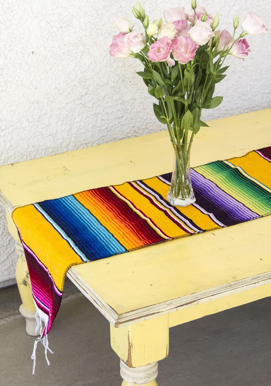 Add a splash of color to your next Cinco de Mayo or Fiesta themed event or party. These table runners are authentic made in Mexico, unlike the majority of runners on Amazon that are made in China. These are all hand woven on wooden looms. This is a set of six runners.