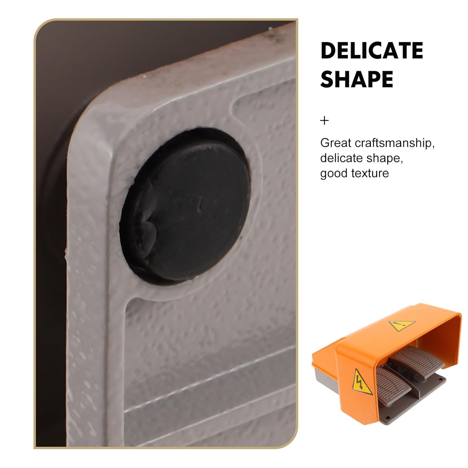 DescriptionThis double pedal industrial foot switch features a dual-rod design for enhanced convenience and efficiency, making it ideal for machine tool applications. The waterproof foot control switch ensures reliable performance in damp environments and protects against accidental spills. Foot operated power switch allows easy control, reducing fatigue and improving workplace automation for industrial settings.Features-Color:Multi-Material:Metal + Plastic-Size:23.00X21.00X15.00cm/9.06X8.27X5.91in-Easy DualRod Operation: The double pedal industrial foot switch enables effortless and precise machine control, enhancing productivity and accuracy for complex operations in an industrial setting-Waterproof Design: With a waterproof industrial foot switch housing, this machine control accessory ensures safe, stable performance even in wet environments, significantly extending its lifespan-HandsFree Efficiency: momentary pneumatic valve control design allows operators to use foot control pedal operation, freeing up hands for detailed tasks and improving workflow in machine tool applications-Universal Compatibility: Featuring a foot pedal pneumatic switch, it adapts to a variety of industrial machine tools, providing flexible integration to various machinery and boosting automation levels-Accurate Safety Mechanism: The heavy duty foot pedal control is engineered to prevent misoperation, integrating a foot operated safety switch to ensure precision and security throughout your manufacturing process