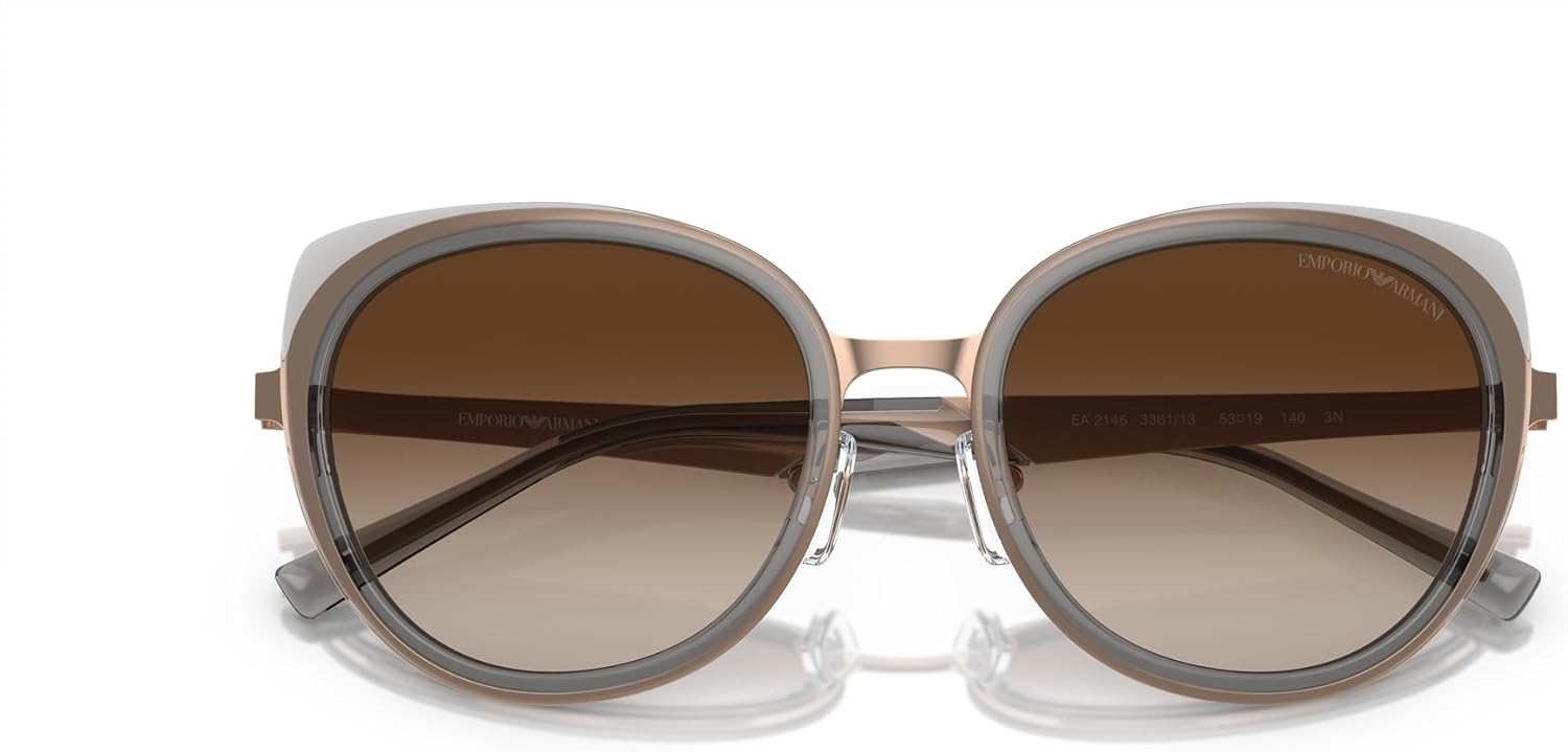 Playing with transparent detail and dynamic metal temples, this style expresses the Emporio Armani visionary design. EA2146 features a round shape frame with flat and shiny metal transparent temples. Metal sheet on the front with transparent nylon fiber layers and bold details. Made from a combination of materials such as metal and nylon fibers. Available in a variety of shiny and transparent colors with gradient lens options. Made in partly bio-based nylon fiber, thanks to parts of monomers generated by renewable sources, as well as partly bio-based plastic lenses. Emporio Armani sunglasses sold by authorized sellers, like Amazon.com, are eligible for all manufacturer warranties and guarantees. Visit the Emporio Armani shop by clicking on the brand link above to shop the entire Emporio Armani sunglass and eyeglass assortment.