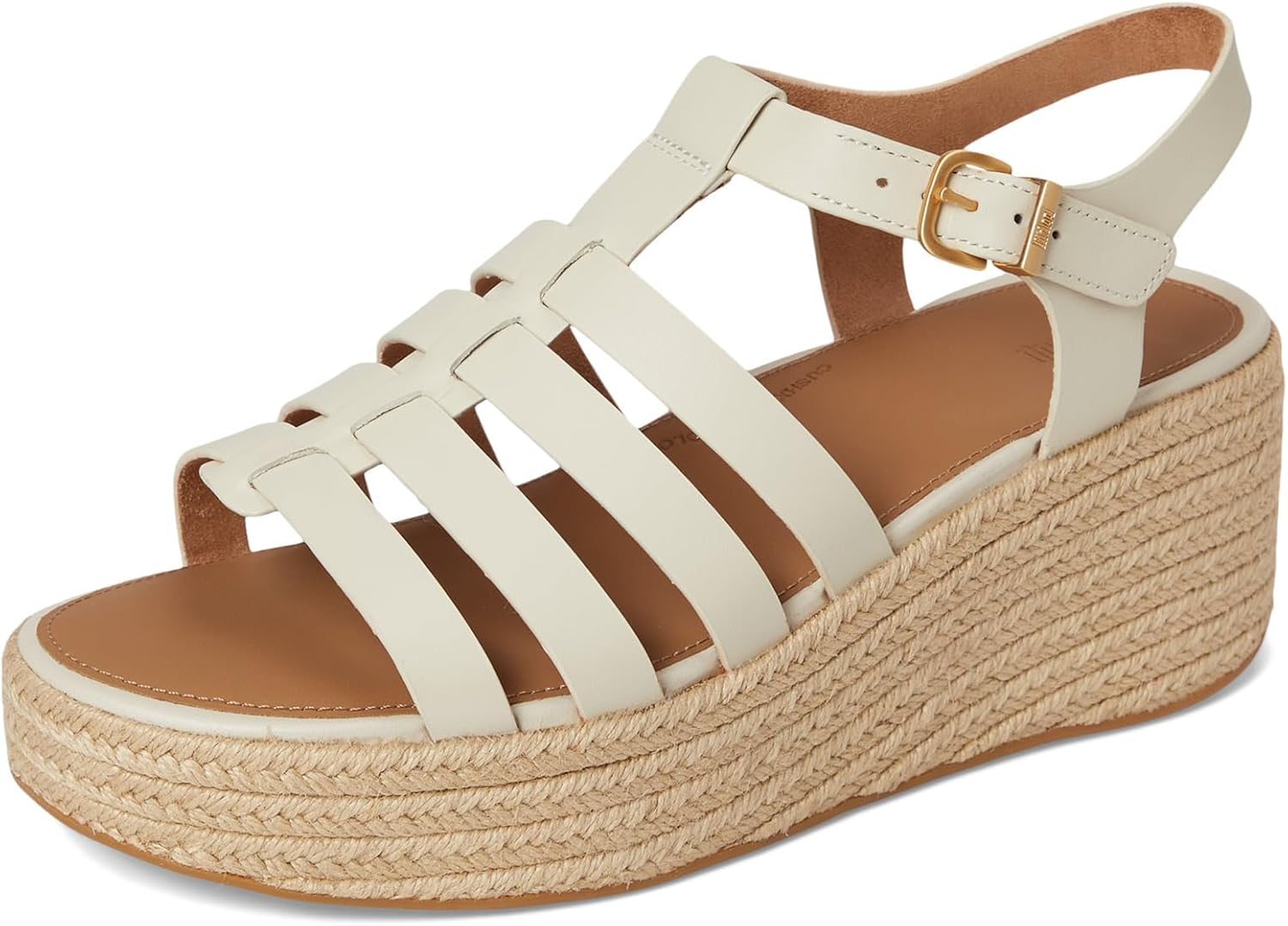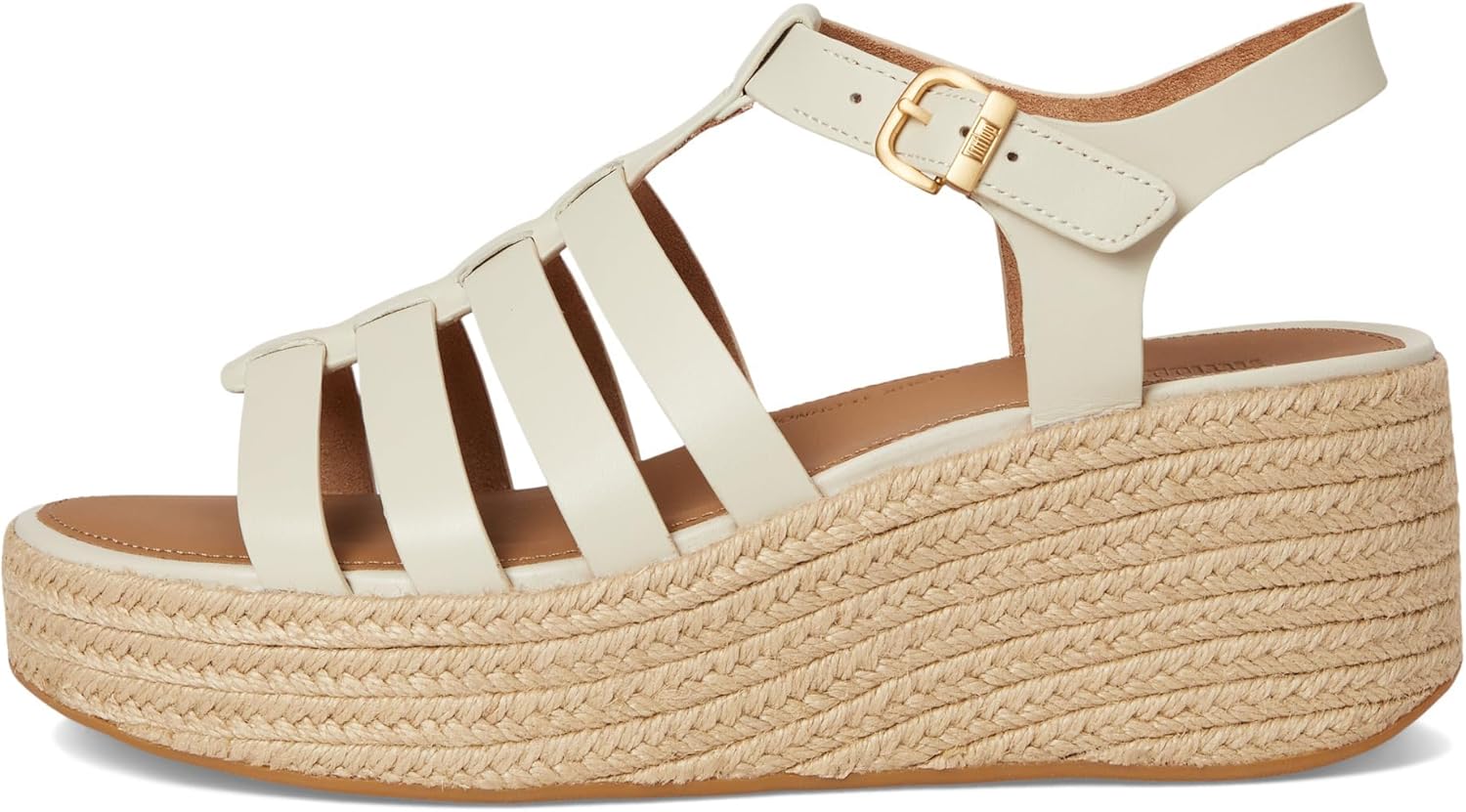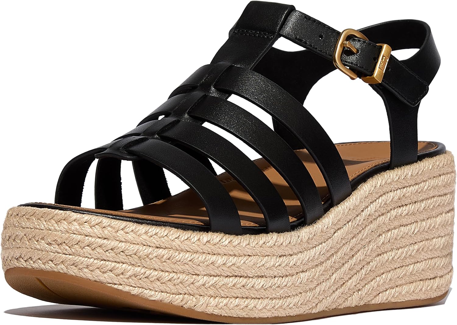 Add the chic FitFlop PLATFFORMS Espadrille Leather Fisherman Wedge Sandals to your footwear collection. Adjustable buckle closure. Anatomically contoured footbed diffuses pressure and gives natural arch support. CushX midsole has soft EVA cushioning inside a firmer EVA shell for stability, with heel-to-forefoot angle optimizing alignment and comfort. Ergonomically engineered to help optimize your body's alignment, natural movement and energy. Impact pillow at forefoot for extra cushioning. Leather upper. Polyester lining. Slip-resistant rubber outsole.