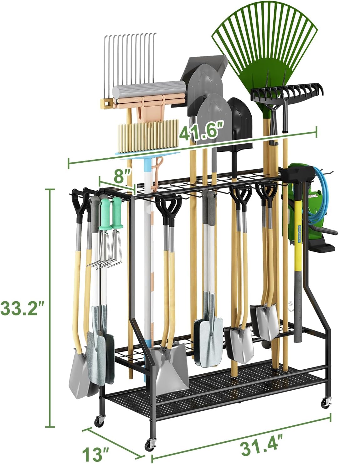 GILLAS Garden Tool Organizer for Garage, Utility Storage Racks with Hooks, Metal Yard Tool Stand Holder Organizer for Long-Handled, Broom, Shovel, Rake, Sturdy Heavy Rack for Outdoor, Yard, Black