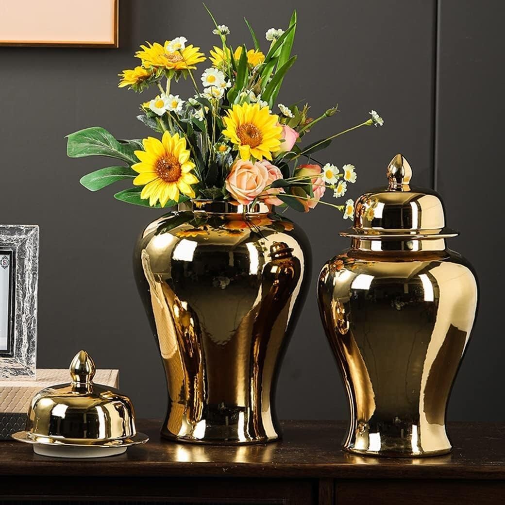 This ceramic jar is versatile and blends seamlessly into any room. It can be used as a kitchen container, bedroom vase or dining table centerpiece. with lid are used for storage of tea,coffee,spices etc.Also,can use as the home decoration in the study,shelf,table,bookshelf and home office.Product Name: Ginger JarMaterial: CeramicStyle: classic styleSize: Please see the detailed picturesPlacement space: living room, dining room, bedroom, living roomPackage includes: 1 x ceramic vase (others in picture not included)Due to different measurement tools and methods, there may be 1-3cm error, please prevail in kind!Due to the difference in light and shooting angle, there may be chromatic aberration, please forgive me!Using ancient Chinese firing techniques, it makes a unique home décor statement as a fine vase or storage jar.an artistic touch to your home decor.Ginger Jar vase must be a perfect Eye-catching Desk Decoration, Wonderful decorative art crafts for office, home, hotel, restaurant, and also a perfect gift for a wedding, anniversary, birthday, and housewarming Thanksgiving, Christmas, or Mother’s Day.Whether as a housewarming gift, birthday gift, Father's Day or Mother's Day surprise, this versatile ceramic jar is a precious gift that symbolizes your love and gratitude.