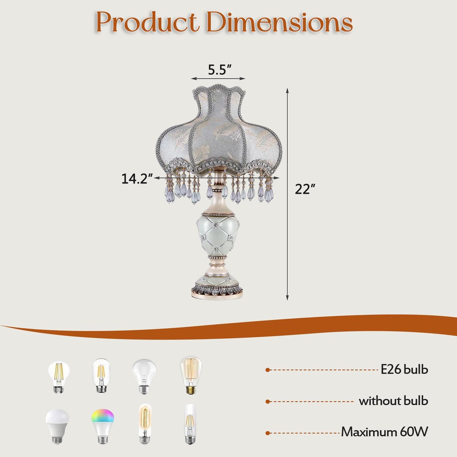 【product information】Size: 56*36cm/22*14.2inch.Lamp body material: resin.Shade material: fabric.Color: (as shown in the picture).Craft: hand-painted, high-temperature firing, etc.Bulb type: LED/incandescent lamp/energy-saving lamp.Lamp holder type: E27/E26.Does the bulb include: No.Switch type: push button switch.Voltage: 110V~240V (inclusive).Irradiation area: 5~13 square meters.Applicable space: living room, study room, bedroom or other spaces.Packing list: 1* table lamp.