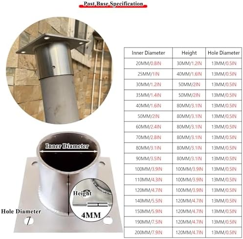 Elevate your outdoor projects with our premium post bases, designed to provide exceptional support for decks, fences, and various outdoor structures. Crafted from high-quality stainless steel, these bases ensure durability and stability, making them a reliable choice for both DIY enthusiasts and professional builders. Our post bases feature adjustable options for easy installation, allowing you to customize them to fit various post sizes and heights. Whether you're enhancing your backyard patio or constructing a sturdy fence, these bases blend functionality with style, ensuring your projects not only perform well but also look great. Key Specifications: - Name: Fence Post Bracket - Material: Stainless Steel - Holder Diameter: 14mm (1/2 inch) - Diameter of Post Base: 20mm - 200mm (0.8 in - 7.9 in) - Post Base Height: 30mm (1.2 in) - 120mm (4.7 in) - Wall Thickness: 4mm (3/20 inch) - Process: Welding Why Choose Our Post Bases? - Made from corrosion-resistant stainless steel for longevity. - Suitable for a variety of applications, including decks and fences. - Designed for quick and straightforward installation. - Features adjustable sizing to accommodate different project needs. - Offers stylish design options to complement your outdoor aesthetics. - Provides solid anchoring to promote safety and stability. - Prevents wooden posts from shaking or breaking, ensuring a reliable foundation. - Versatile use for porch railings, pergolas, mailbox posts, and more. Choose from multiple package options to suit your project needs, whether you require one post base or a bulk order. Please note that slight size variations may occur due to manual measurement, and color differences may exist between the product and your screen. Always refer to the actual product for the best representation. Upgrade your next outdoor project with our versatile post bases and enjoy the perfect combination of strength and style!