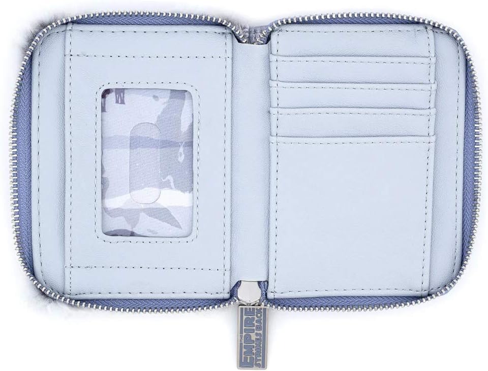 The next time you journey to the frozen planet of Hoth, you can keep your cold, hard cash nice and warm in this iridescent faux-leather and Sherpa fur wallet that measures approximately 5-inches wide x 4-inches tall. The Star Wars The Empire Strikes Back 40th Anniversary Hoth Faux-Fur Zip-Around Wallet boasts quilted, metal rivet, and enamel zipper-pull details, as well as the symbol of the Rebellion and an inner lining featuring Imperial walkers and more! Also inside you'll find a clear ID window and slots for your credit cards. Don't miss this!
