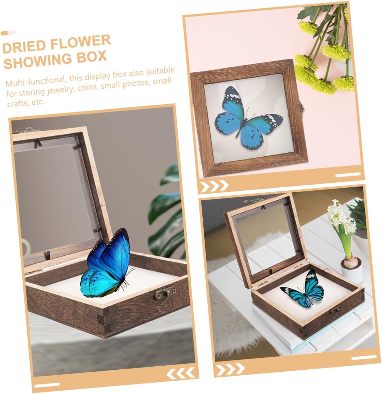 Package Include 4 Display Case 4 x Pin Cushion Features - Size: 10.00X10.00X4.50cm/3.93X3.93X1.77in Butterflies Specimen Case - Material:Acrylic, wood, cloth Insect Specimen Display Holder - Wooden Insect Display Case - Made of acrylic, wood, cloth which features with stability and durability, very hard and smooth for usage Specimen Frame Case. - Compact and weight, this wood insect specimen box won't take up much space for storage Insect Specimen Container. - Lightweight, multi-functional display box also can be used for storing jewelry, coins, crafts, etc Wood Insect Specimen Display Holder. - With a clear lid, not only can let you better to display your specimens, but also protect the specimens Vintage Specimen Display Case. - A display box featuring transparent lid which allows you to view the items inside the box easily Insect Display Case.Goods DescriptionButterflies Specimen Case If you are looking for an insect specimen display box, I will tell you that our display box will be .Specimen Frame We adopt acrylic, wood, cloth material, can keep it for longtime.Specimen Container A nice display case for your specimens, also the jewelry or other small items you cherished