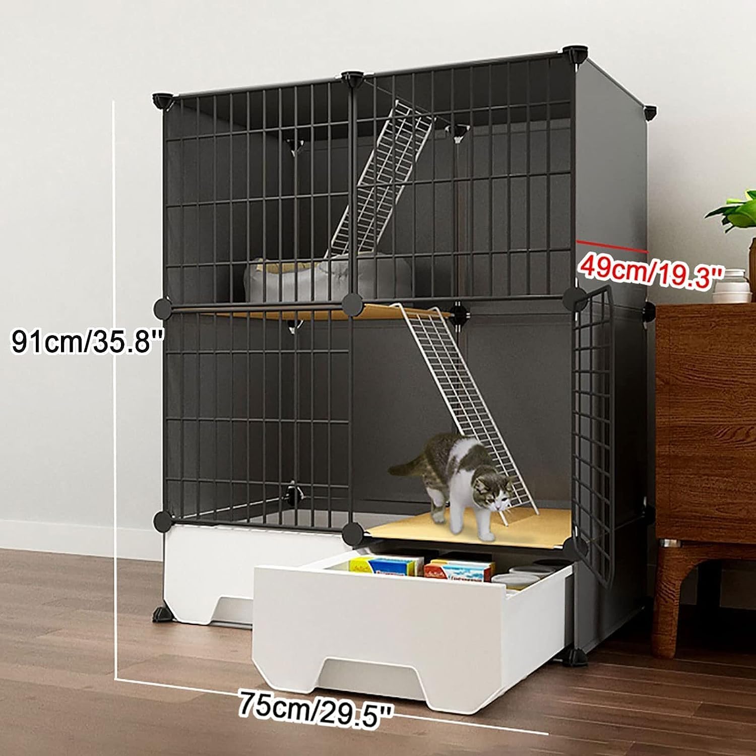 Enhance your cat's living environment with our thoughtfully designed cat cage, perfect for promoting your feline's health and happiness. Crafted with durable metal, this spacious cat enclosure not only accommodates playful activities but also provides a secure haven for relaxation. Its versatile wire design ensures proper ventilation and visibility, allowing your cat to enjoy the view while feeling safe inside. Ideal for small living spaces like apartments, this cat cage is also a fantastic choice for cat rescues and shelters looking to create a nurturing space for felines in need. The DIY Cat Cage comes complete with essential accessories, including a cozy cat nest and a litter box, making it a practical solution for pet owners. Whether you’re providing a temporary home for your new kitten or a safe retreat for your resident cat, this cage adapts to various situations. Its elegant black finish complements your home decor while ensuring your pet feels comfortable and secure. Invest in your cat's well-being with this reliable and stylish cat cage, designed to meet the needs of both pets and their owners. Create a peaceful, engaging environment for your furry friend where they can play, rest, and thrive. Please note that the accessories included may vary from the images shown, as we strive to deliver the best possible product based on availability. Thank you for your understanding.