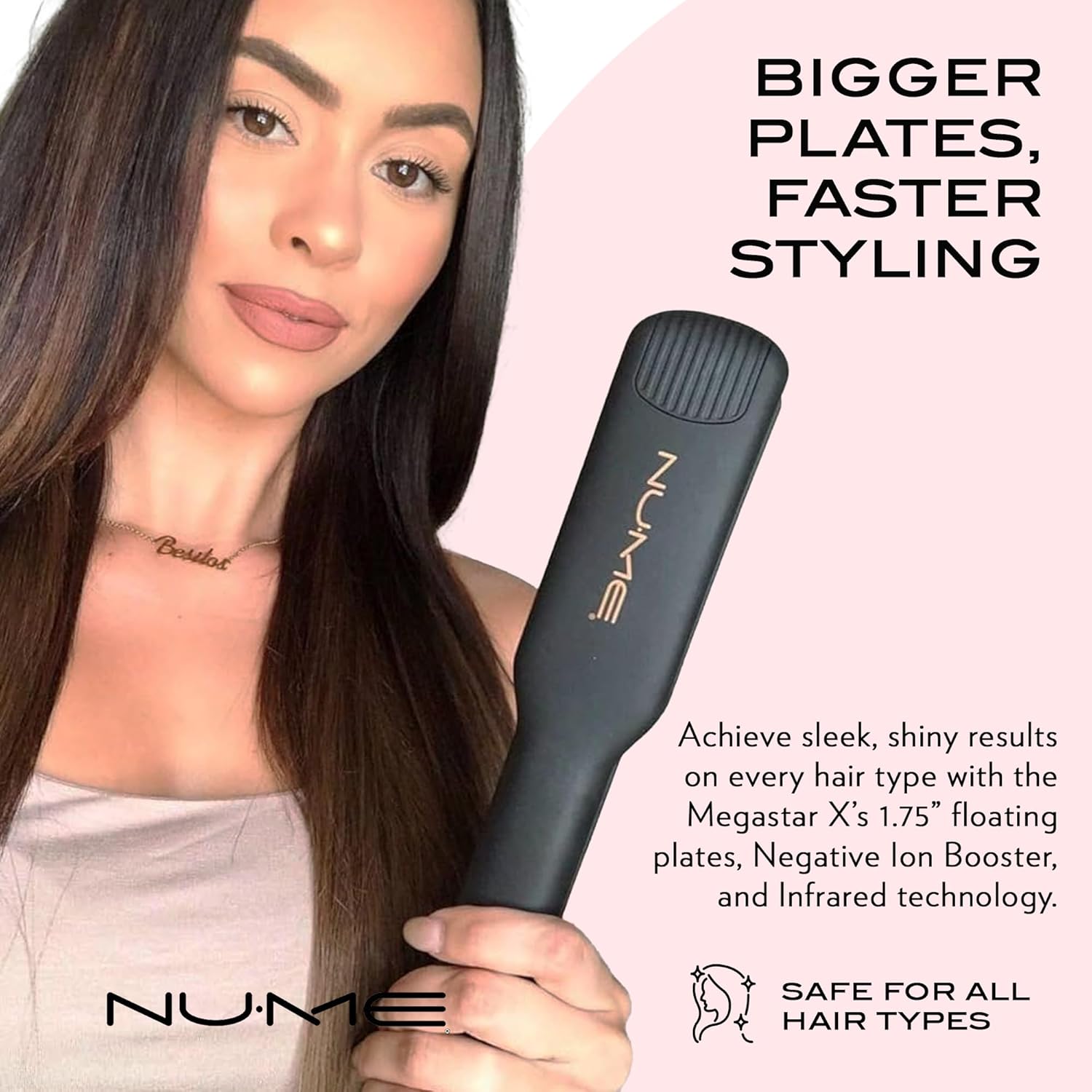 | Product Benefits | NuMe uses Far Infrared Heat & Negative Ion Conditioning Technology that seals in your hair's natural moisture and eliminates static electricity, leaving you with long-lasting, frizz-free styles. |