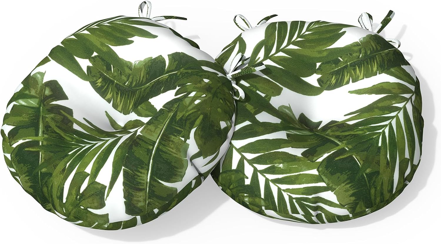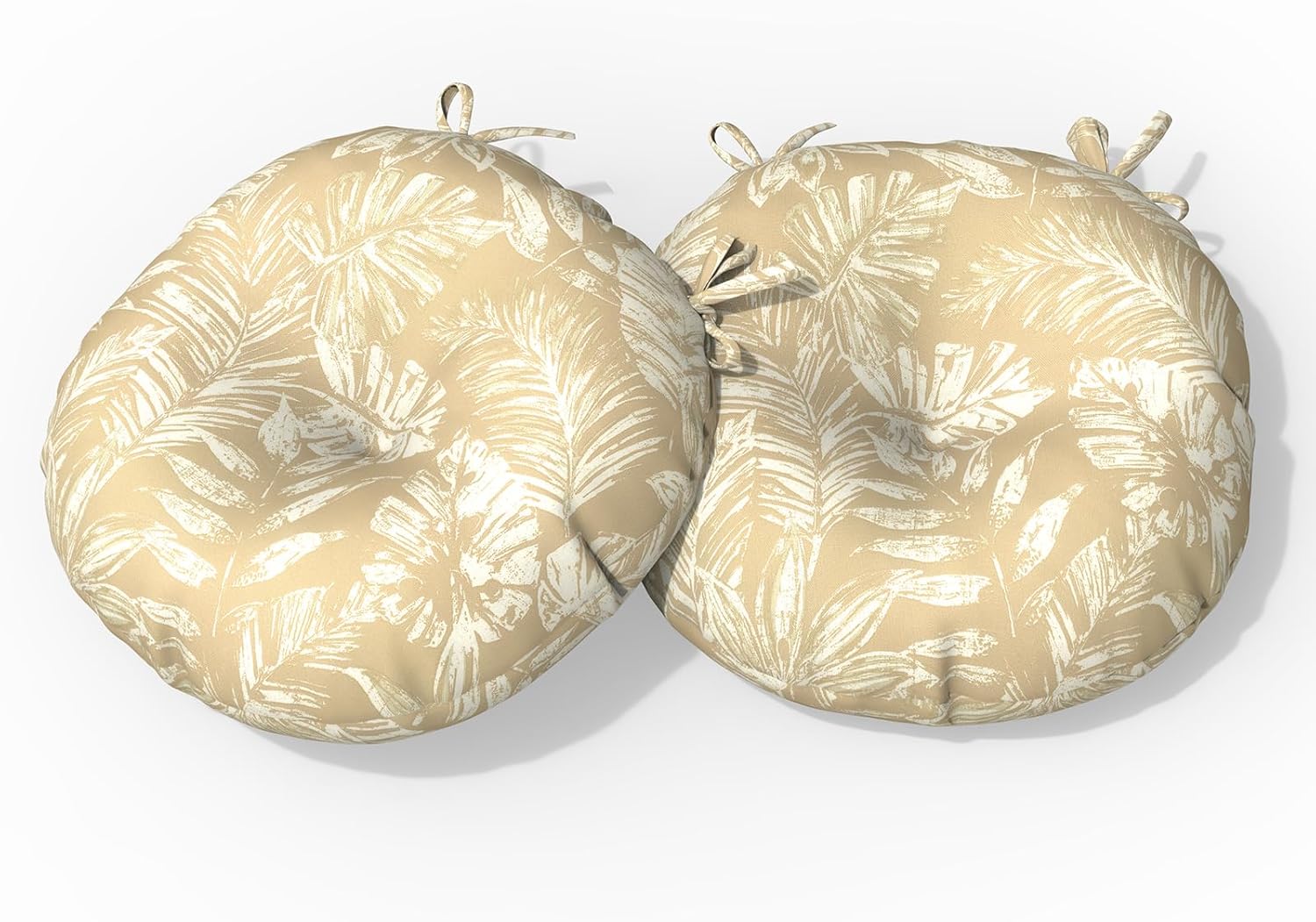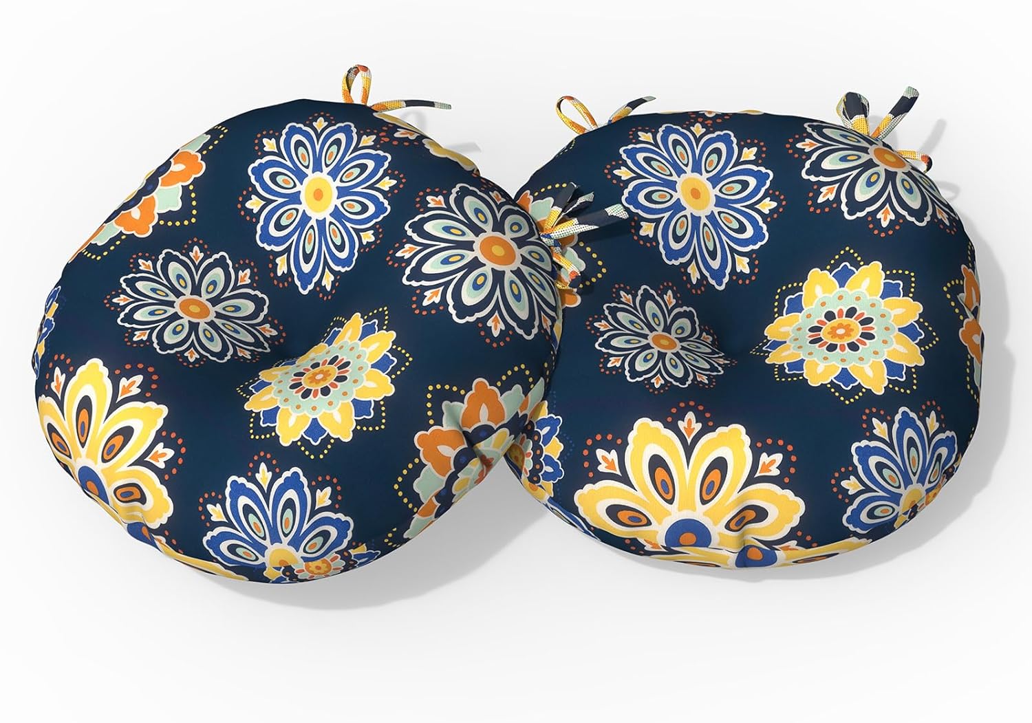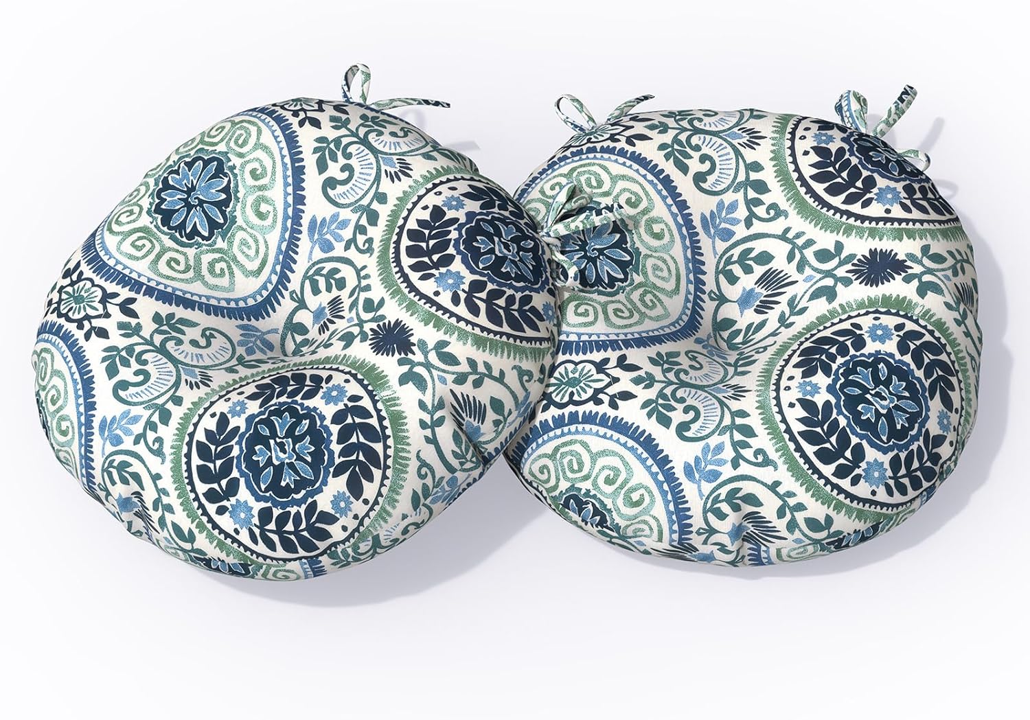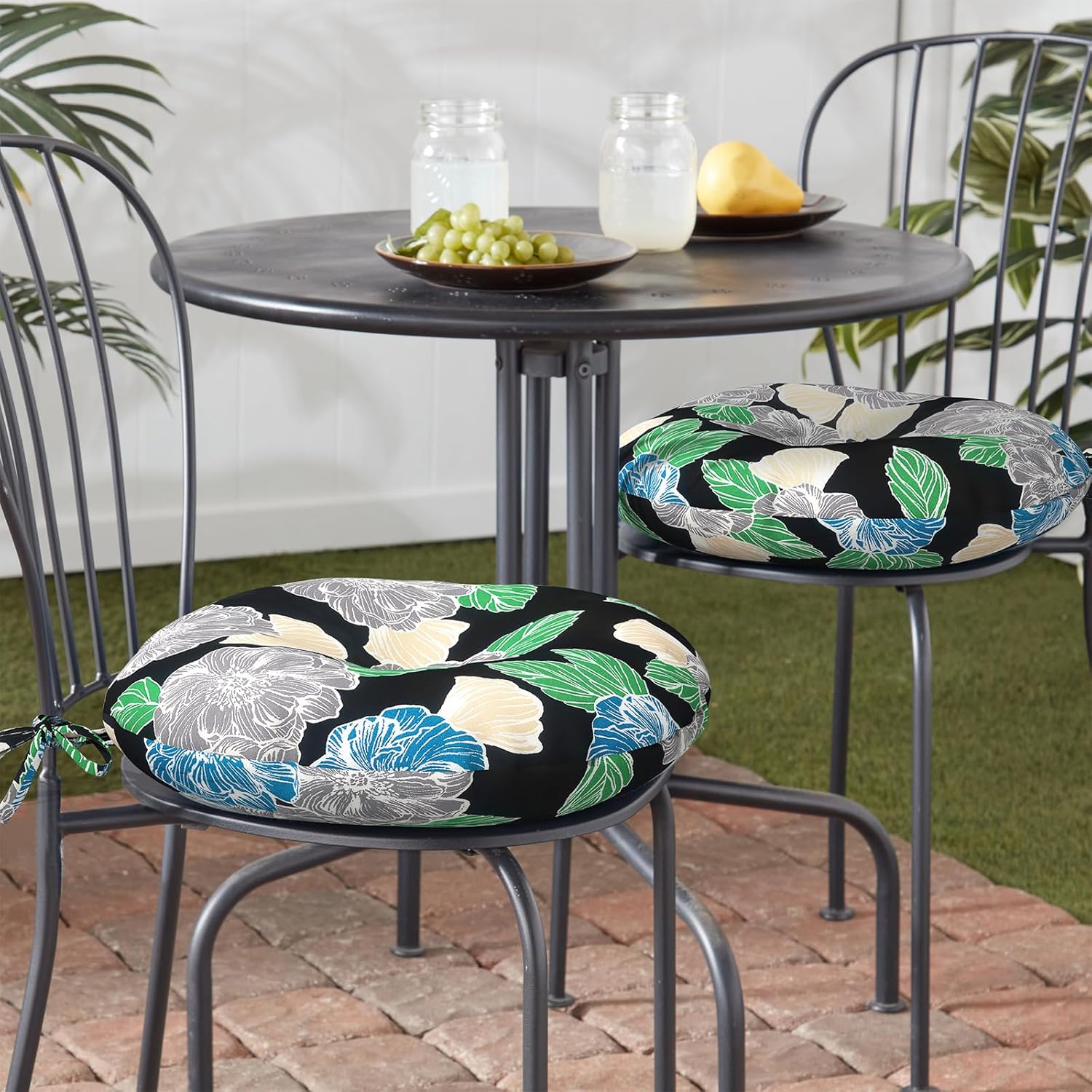 TWLEAR Outdoor Bistro Chair Cushion for Patio Furniture, Water Resistant Round Seat Cushion Set of 2, Tufted Patio Chair Cushions with Ties, 15"x15"x4", Peony Garden