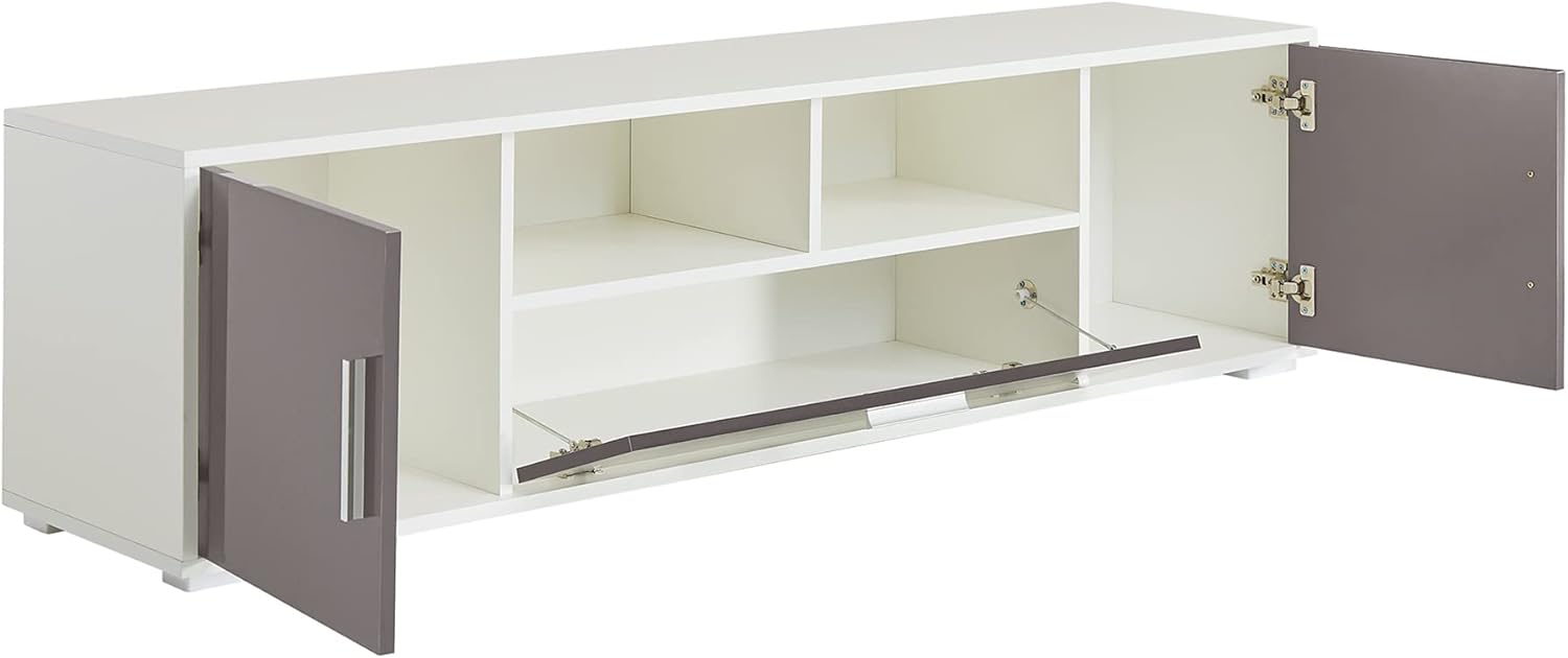 ✦Flash point: 1.YOUR LED ENTERTAINMENT CENTER: This TV stand with LED comes with 16 RGB LED BACKLIGHT, 4 LIGHT MODE & BRIGHTNESS ADJUSTMENTS. Equipped with REMOTE CONTROL makes changes of light ever easy. 2.PERFECT SIZE: 13.8”D × 63”W × 15.7”H, this TV console fit up to 65 inch TV. Spacious tabletop along with 3 large storage space satisfies all your display and storage needs in the bedroom or living room. 3.FUSING DESIGN WITH FUNCTION: Featuring a modern and simple design, this TV Stand with Led fits with different room theme, and the LED lights could create different atmosphere for your room. ☛ Mainly Feature: ☛ Quantity: 1pc. ☛ Material:UV high glossy coated Particle board or Chipboard ☛ Colour: White and Gray ☛ Product Size: 13.8”D × 63”W × 15.7”H. ☛ Package Size: 19.7”D × 67.7”W × 5.5”H. ☛Net Weight: 63lbs ☛Gross Weight: 66lbs ☛ load-bearing: 132lbs ☛ Applicable scene: Bedroom, Lounge room, living room, etc. ☛ Equipped with 16 colors adjustable LED lighting system, elegant enough for adding special charm to your house. ☛ Package Includes: ☛ 1pc×TV Cabinet all parts ☛ 1pc×Instruction manual