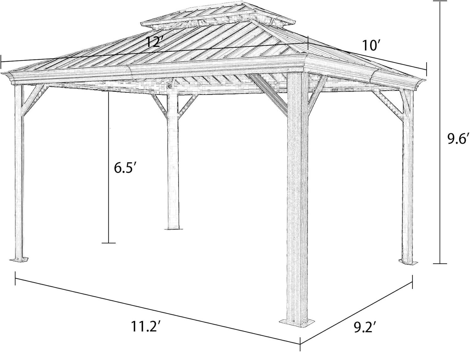 Patio Tree 10' x 12' Patio Gazebo Double Canopy + Double Track System + Two-Layer Sidewalls. The top air vent provides better air flow. At the same time, mosquito net and polyester curtain create private and comfortable atmosphere. Stylish, convenient and functional. Our gazebo is perfect for you to enjoy the outdoor life no matter the rain or sun! Material: High-grade Aluminum Frame and Steel Canopy; 100 Percent Polyester Dimension: 10 ft x 12 ft Scope of application: Patio, Garden, Backyard and Poolside. Perfect for outdoor events. Water, Rust and UV Resistant