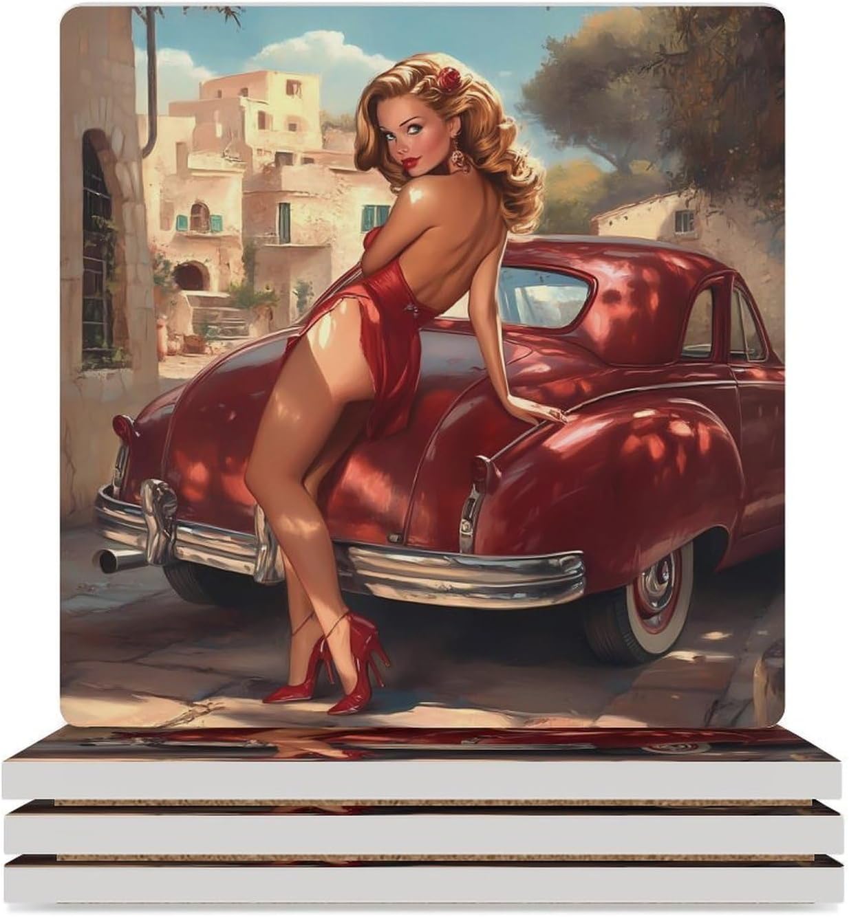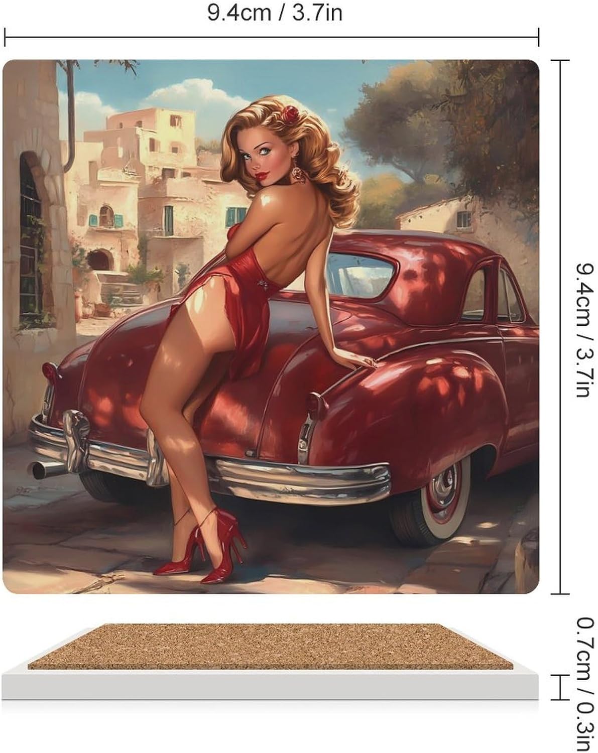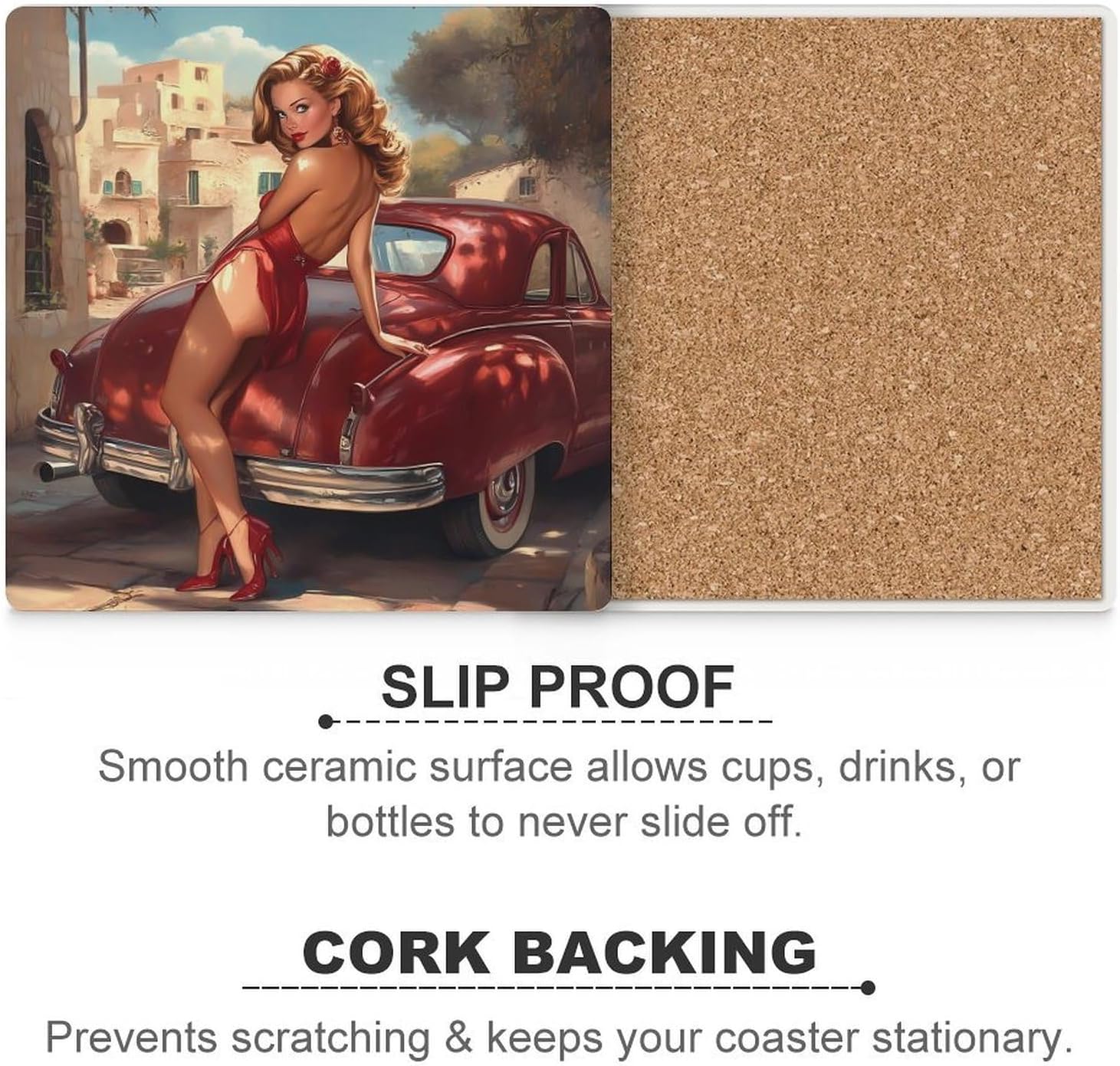 Cute Printed Absorbent Ceramic Coaster for Drinks Funny Coasters with Cork Base Suitable for Kinds of Mugs, Cups, Prevent Tabletop Wear And Scratches, and is Easy to Clean