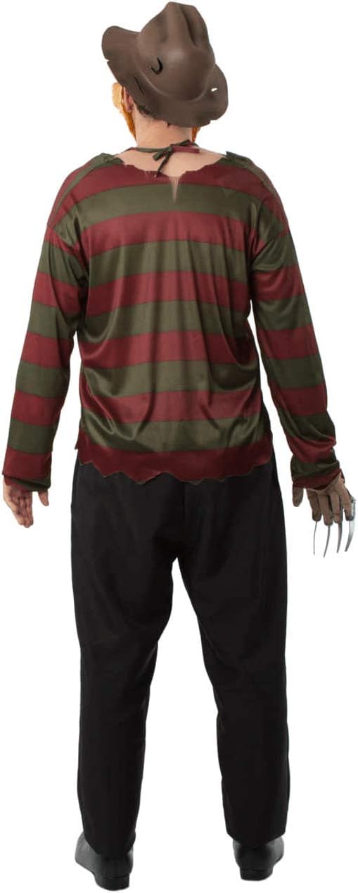 Freddy Krueger mask, shirt, and glove. Designed for use by adults and teens. OFFICIALLY LICENSED Nightmare on Elm Street costume, items shipped and sold by Amazon are guaranteed authentic. Look for Rubie's entire selection of scary costumes and accessories in sizes and styles for everyone. Rubie's brings fun and fantasy to dress-up with the broadest selection of costumes and accessories, offering everything from full mascot suits to masks and wigs, from deluxe licensed costumes to simple starter pieces, from costume shoes to character make-up, and so much more. Family-owned, family-focused, and based in New York since 1950, Rubie's promotes safety in dress-up so you can relax and have a great time while looking the part. Look to Rubie's for every costume occasion and season: Halloween, Christmas, Mardi Gras, Easter, and all in-between.