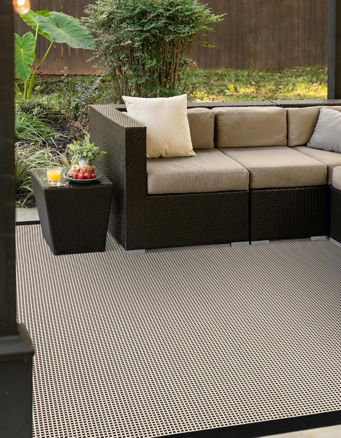 The Outdoor Border collection features a minimalist border pattern that lends a sense of structure without overwhelming its surroundings. Its stain-resistant quality paired with a pet-friendly and shed-free nature makes it an ideal choice for spaces that experience high foot traffic or are exposed to the elements. Given its color palette and robust construction, this rug is well-suited for patios, decks, and outdoor living areas. It can also serve as a transitional piece in entryways or sunrooms, where it would seamlessly complement modern and coastal-themed decor. The flatweave texture provides a smooth underfoot experience, making it equally functional and stylish for outdoor entertainment or relaxation areas.