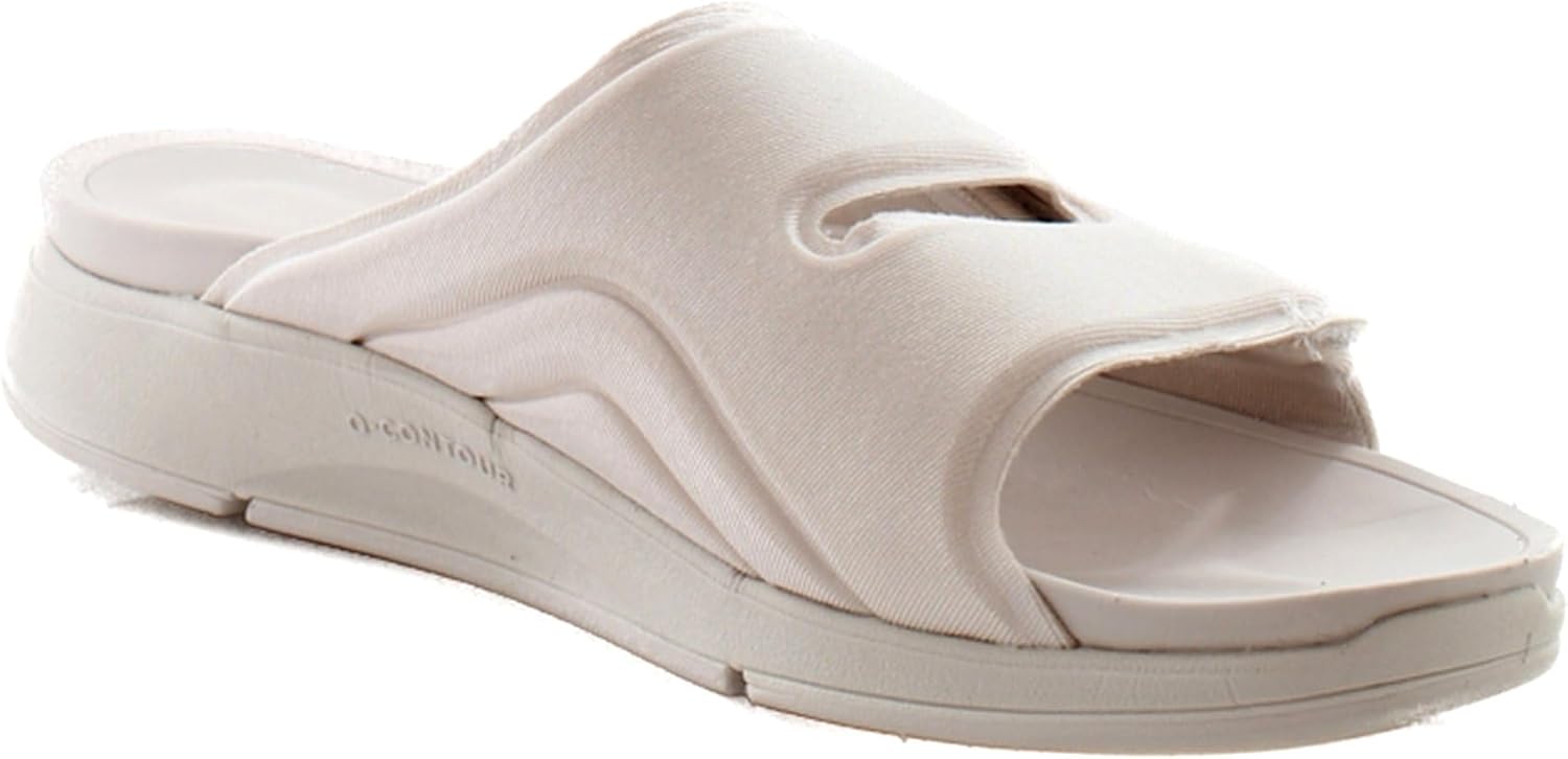 Relax and feel the chill post-workout or everyday in these womens recovery slide sandals. BEST FOR: Post-workout recovery + Everyday casual wear. PERFORMANCE TECH: Exceptional cushioning throughout. MADE FOR WOMEN FIT: Designed for a woman’s unique foot shape, muscle movement, and build with a narrower heel, roomier toe, and softer foot cushioning. MATERIALS: Molded padded fabric strap. CLOSURE: Slip-on fit with adjustable Velcro strap for a secure fit. FOOTBED: Anatomically-shaped RE-ZORB LITE® for responsive underfoot comfort + shock absorption. MIDSOLE: Lightweight ACTIVfoam™ EVA for soft cushioning. OUTSOLE: High-abrasion EVA with flex tread pattern. WEIGHT: 126 g/4.4 oz per shoe. HEEL-TO-TOE DROP: 14 mm.