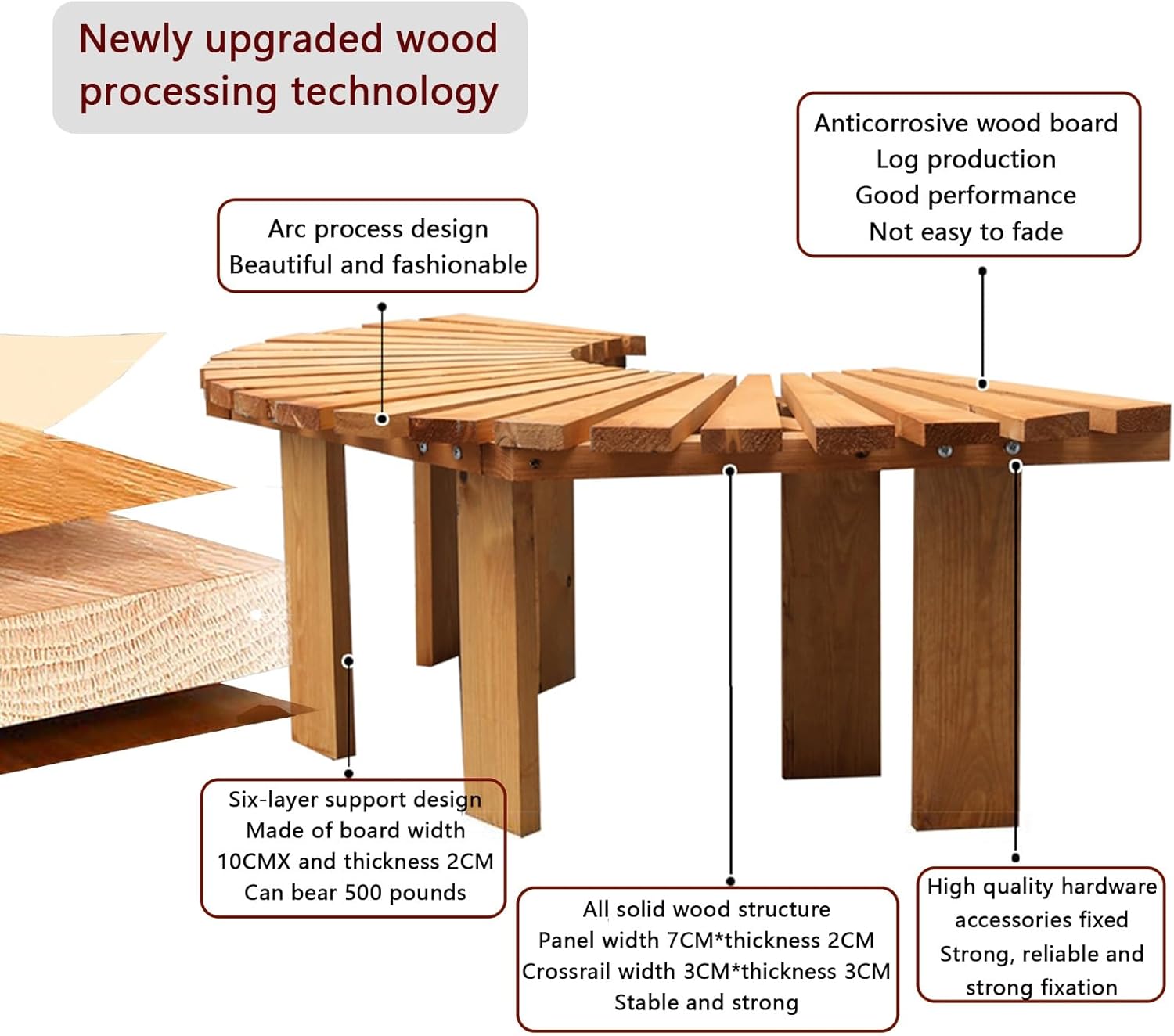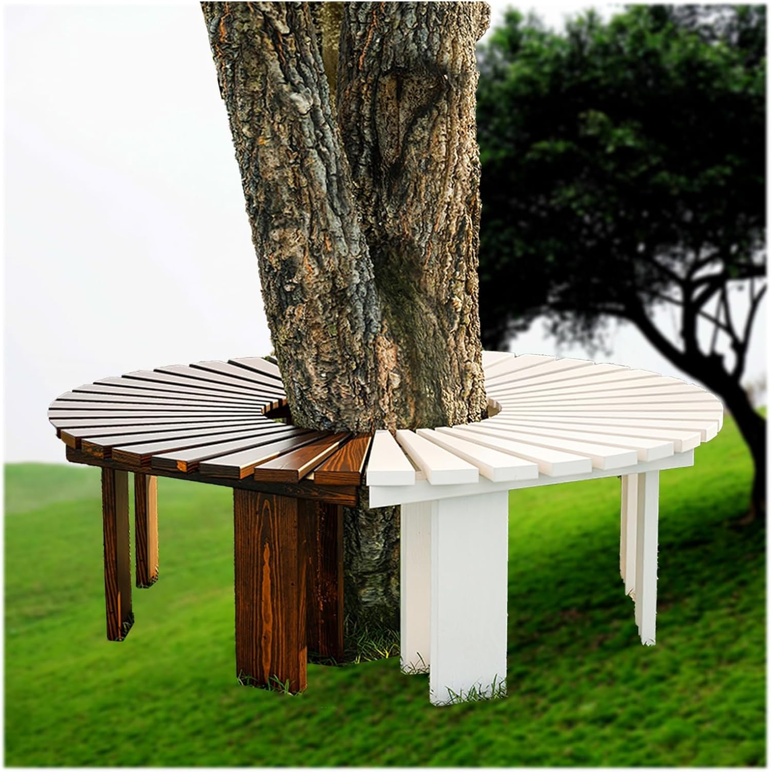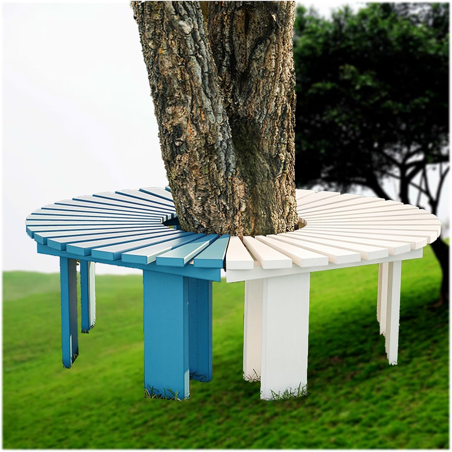 Park Bench:Transform your outdoor space with our beautifully designed garden bench, featuring a unique curved structure that sets it apart from traditional linear benches. This innovative design not only enhances the aesthetic appeal of your garden but also allows for seamless incorporation into various landscapes, whether in a park, garden, schoolyard, or private yard. Enjoy moments of relaxation and connection with family and friends as you create a welcoming atmosphere in your outdoor oasis.Crafted from high-quality cedar wood, this bench is not only visually appealing but also durable and weather-resistant. Available in customizable colors such as Tan, Yellow, Blue, White, and Black, it complements any outdoor decor theme. With an outside diameter of 120 cm and a height of 40 cm, it offers ample seating space while maintaining a compact footprint. The thoughtful design includes a leg width of 10 cm and wood thickness of 2-3 cm, ensuring stability and comfort.Perfect for a variety of public and private settings, this bench can enhance units, city streets, parks, scenic spots, communities, and squares. Its vibrant colors resist moisture and are easy to clean, making maintenance a breeze while adding a pop of color to your environment.Package includes: 1 semi-circular tree bench. Please note that slight size variations may occur due to manual measurements, and colors may differ slightly from images due to lighting and screen settings.We are committed to providing excellent service. If you have any questions or need assistance, please don’t hesitate to reach out to us.