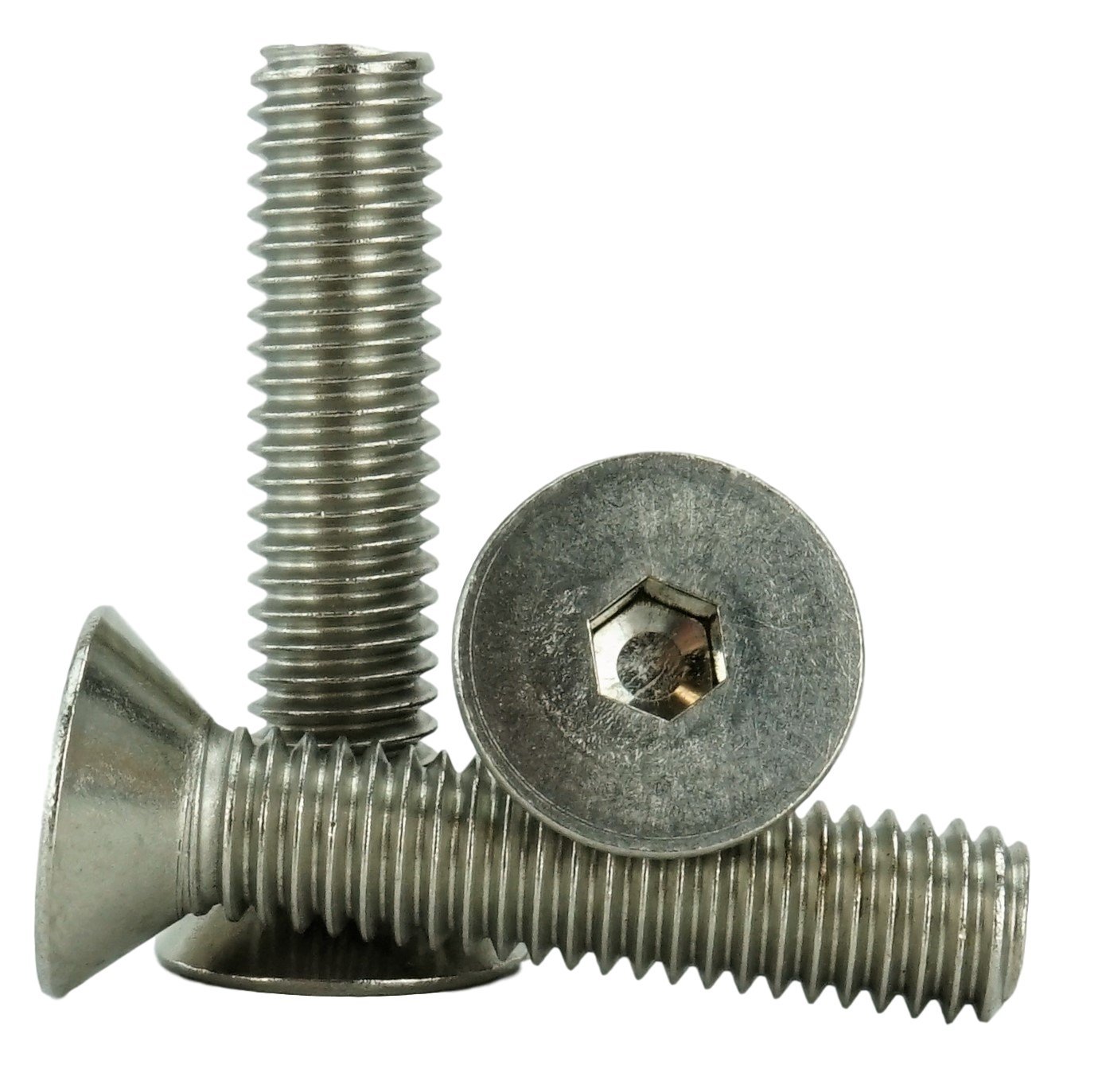 All pictures represent actual product. The flat head is cone shaped for use in countersunk holes and has a flat top that fits flush with the mated surface. Socket screws hexagon drive for tightening with an Allen-style wrench. This screw carries a recessed internal socket drive to add strength. The 18-8 stainless steel material provides strength and offers good corrosion resistance in many environments. The material may be slightly magnetic. Flat socket cap screws are threaded fasteners that have a cap head with an internal socket drive for installing in areas with limited side clearance.