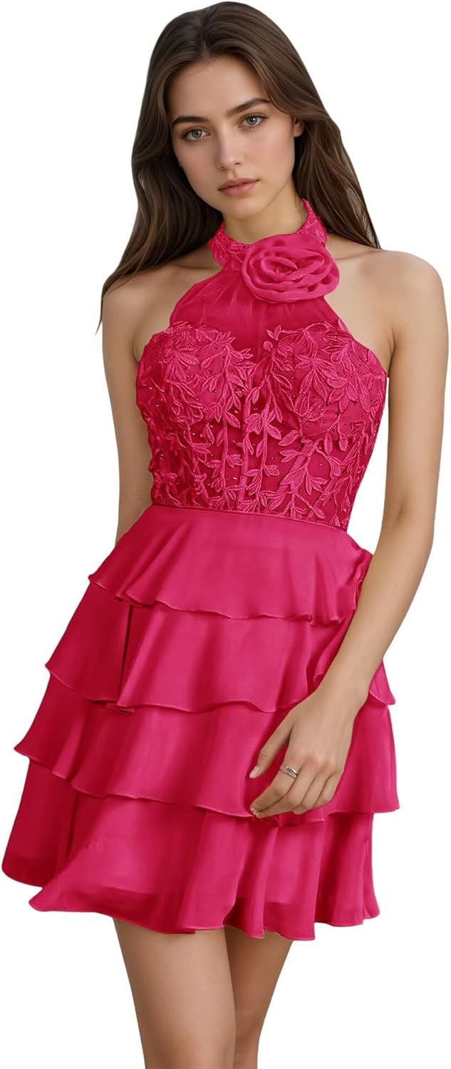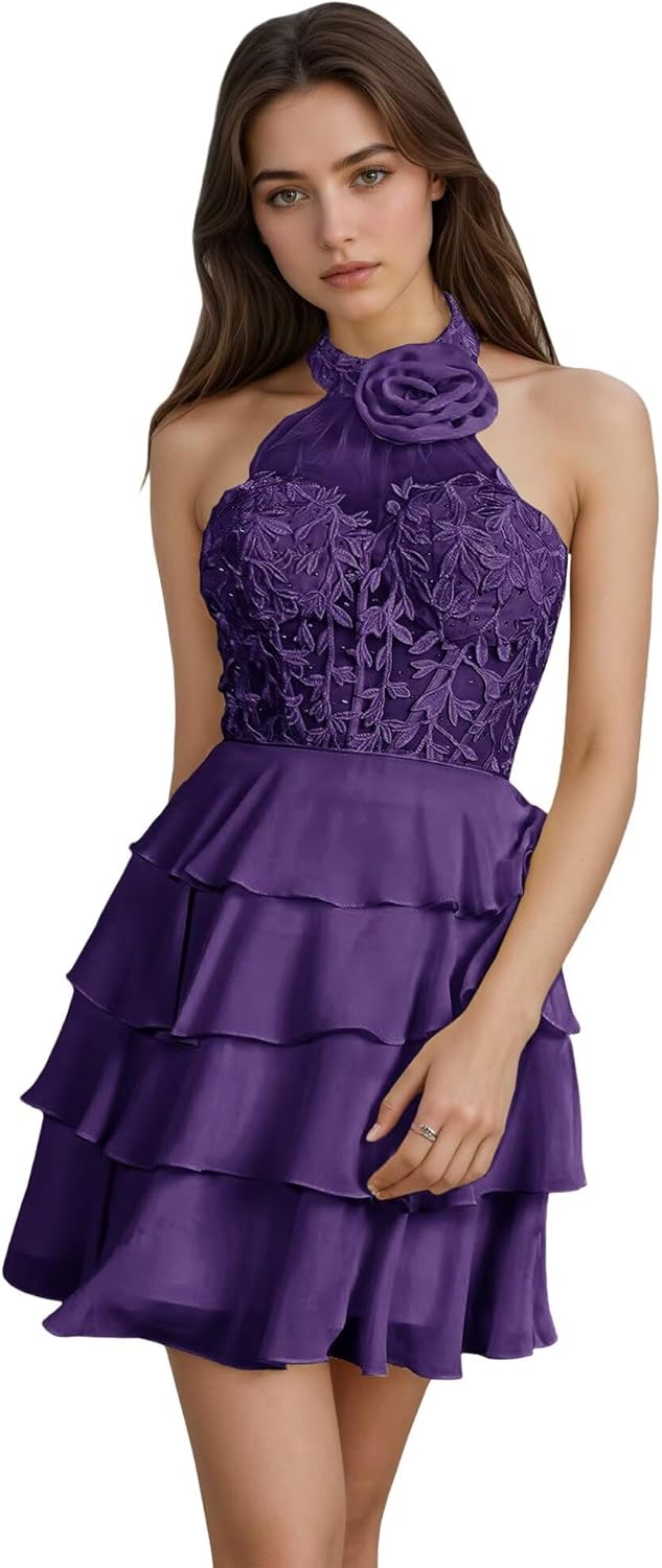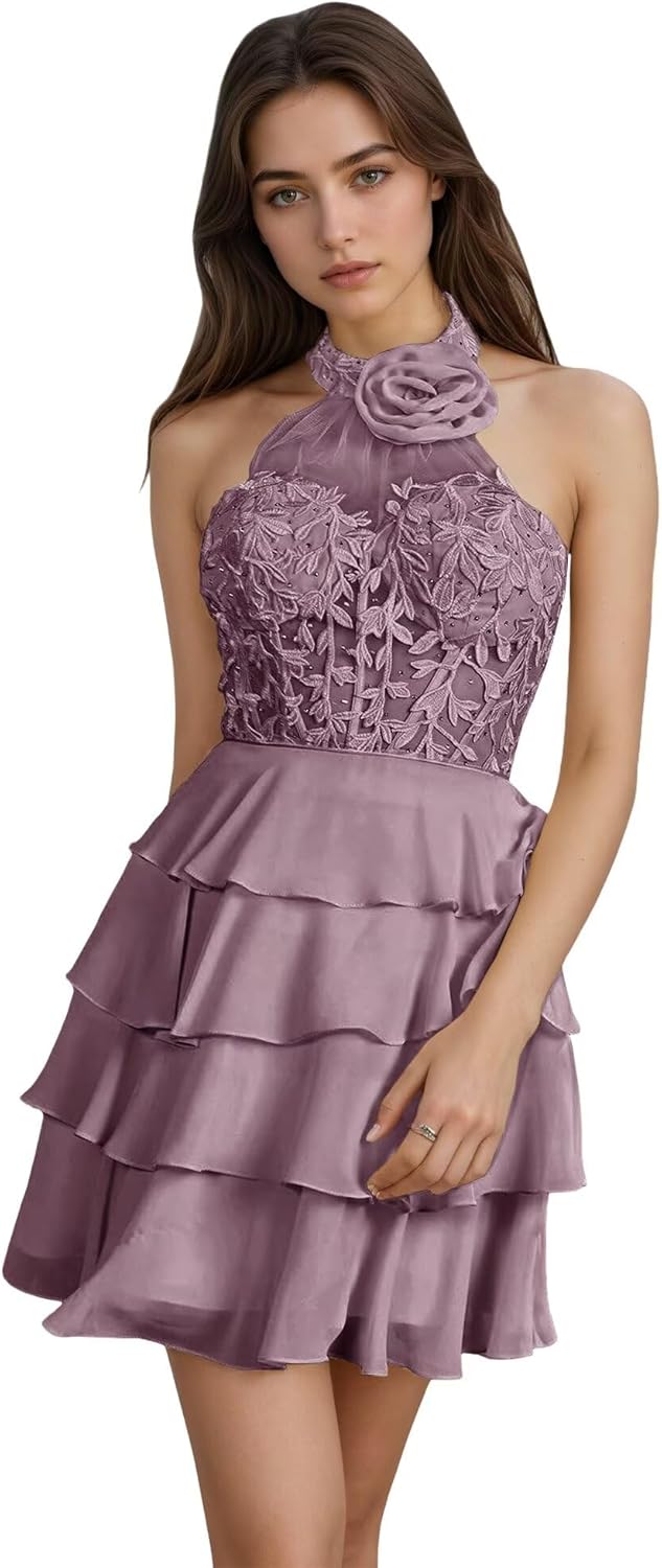 | Embellishment Feature | a line cocktail dress, chiffon flower graduation party dress, lace tiered homecoming dress, short Lace wedding dress, short prom dress |