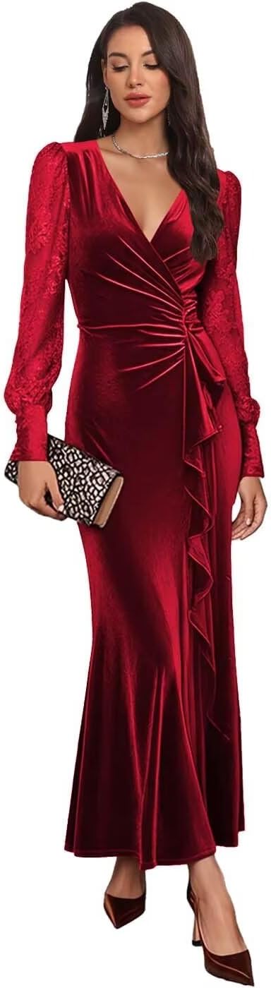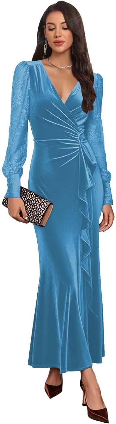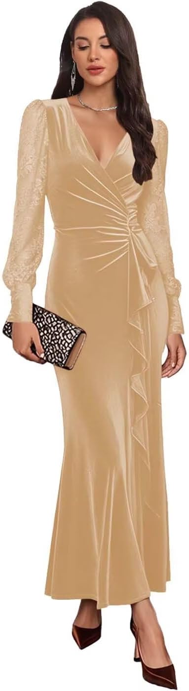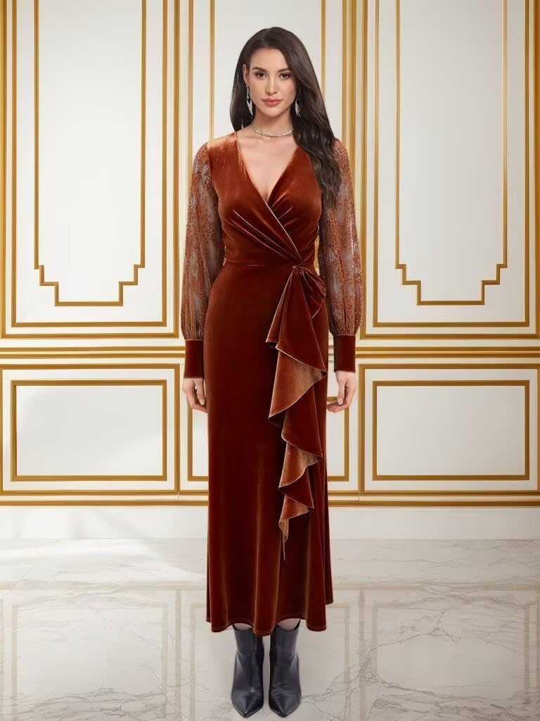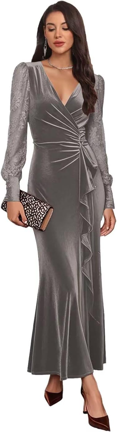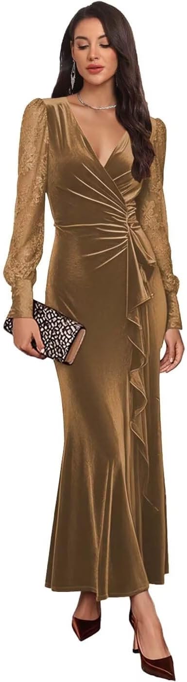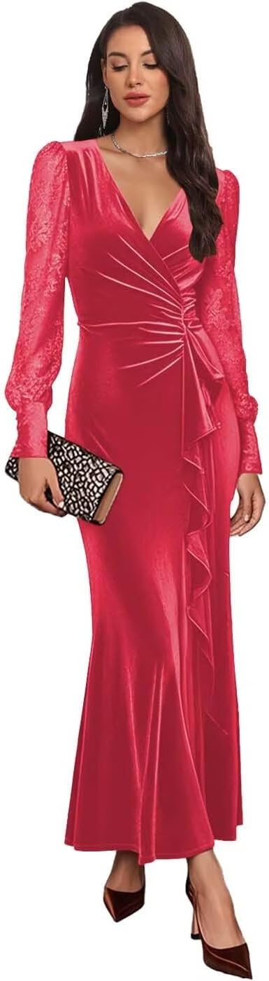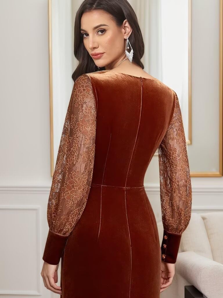 | Embellishment Feature | Laces Sleeves Velvet Bridesmaid Dress |