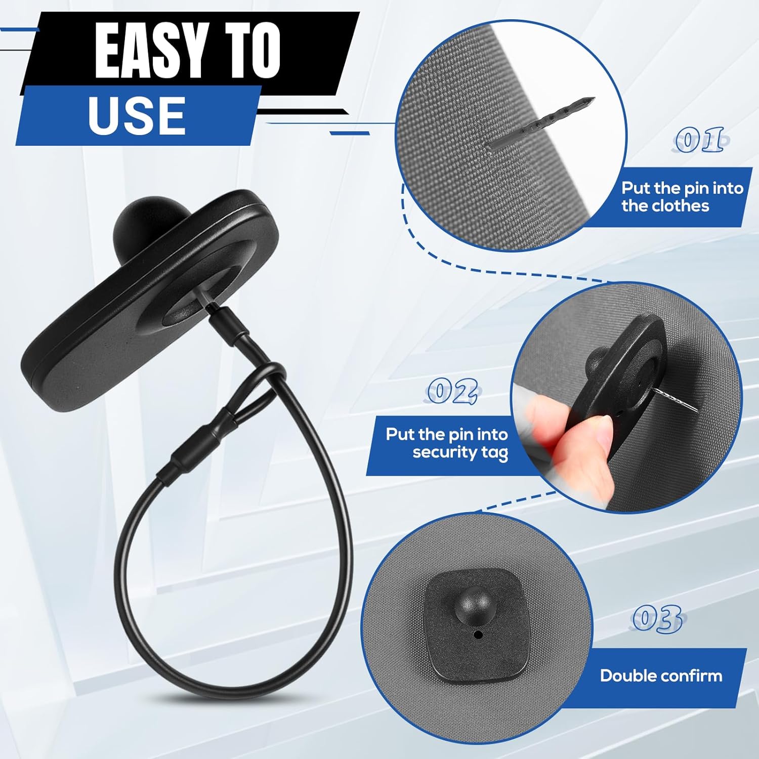 Features: This package includes 1000 security tags, 1000 pins, and 100 lanyards, providing a comprehensive security solution for your store. These hard security tags with lanyards enable seamless integration across various product types, ensuring wide ranging security coverage that retailers require for diverse merchandise protection With a tag size of about 1.89" x 1.65" and a pin size of 0.63" x 0.47", these EAS security tags are compact yet highly effective. They allow for a suggested EAS door distance of about 3.94.9 feet, offering powerful reach without taking up unnecessary space, ideal for retailers striving for optimal store layouts and security Specifications: Material: ABS Color: black Frequency: 8.2MHZ RF Size: Tag: about 1.89 x 1.65 inches Pin: about 0.63 x 0.47 inches Lanyards: about 6.69 inches/ 17 cm Suggested EAS Door Distance: about 3.9 - 4.9 feet Package includes: 1000 x Security tags 1000 x Pins 100 x Lanyards Notes: Manual measurement, please allow slight errors on size. The color may exist a slight difference due to different screen displays.